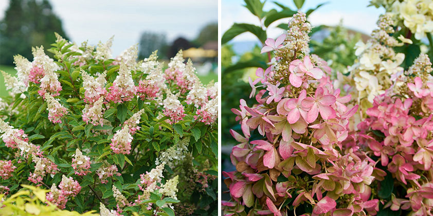 - Hydrangea Paniculata (Pinky Winky) and Photina Serulata (Red Robin) provide wonderful colour for partially shaded exposed gardens with heavy soil.