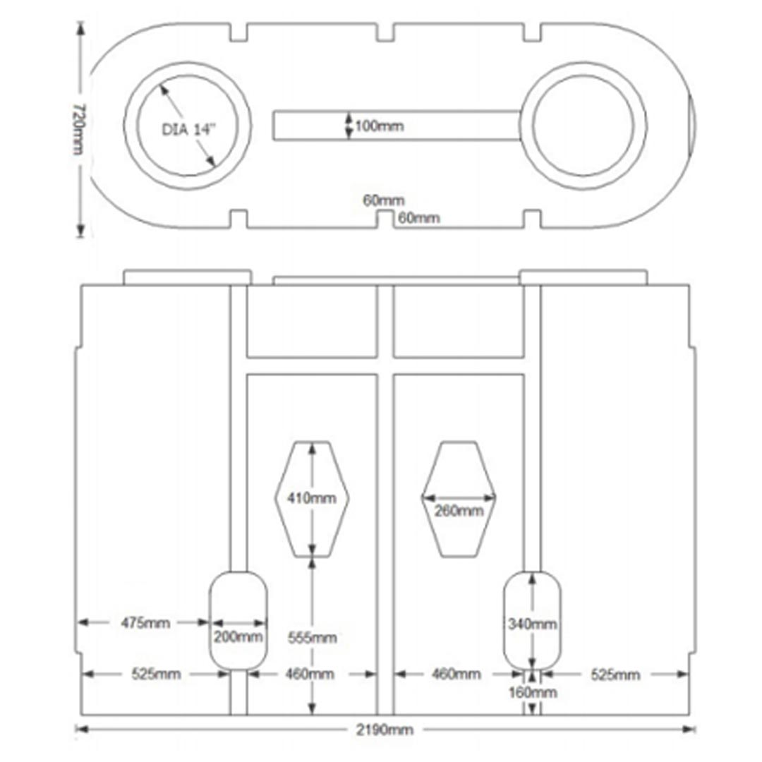 - 2 x 2″ brass threaded outlets moulded into the tank