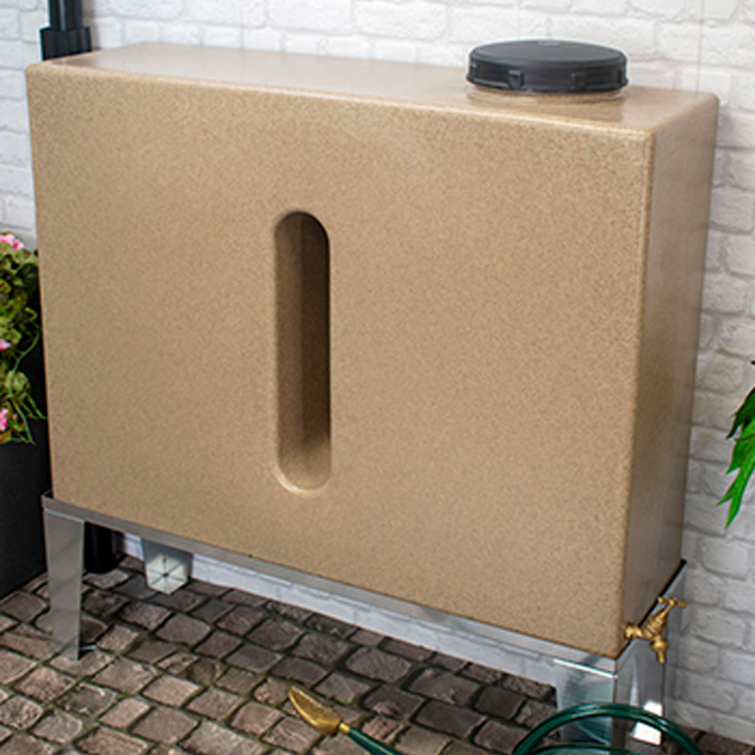 The beautiful laser cut stand is another optional extra, raising up the water butt to allow you to fill a watering can with ease. However, you can raise the water butt up using courses of bricks, concrete blocks or flat railway sleeper. Just remember to ensure that the water butt is supported along its entire length and is on a flat level base.