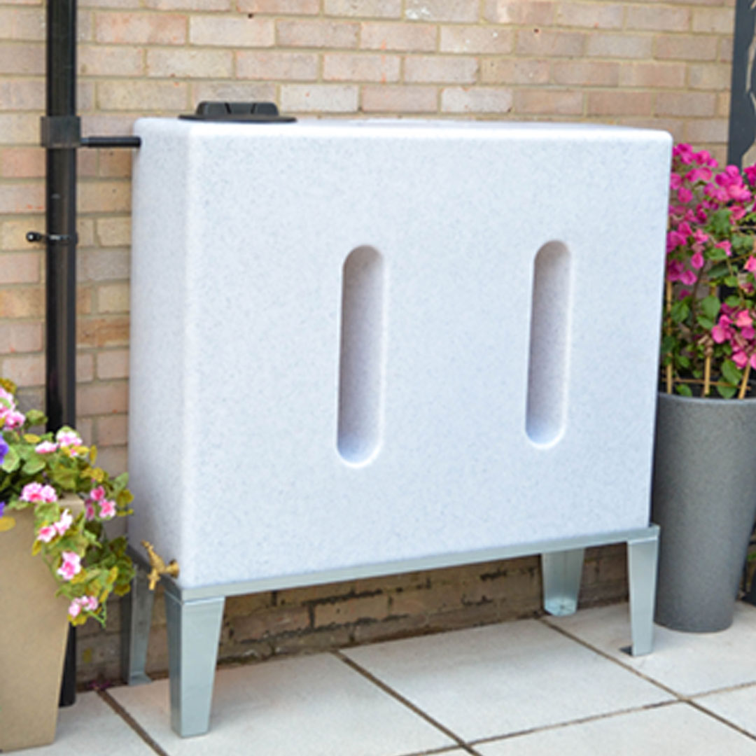 This super-slim water butt fits in the tightest of spaces and allows you to collect lots of naturally soft rainwater for your garden. Rotationally moulded for strength and durability, it has an average wall thickness of 6-7mm, is guaranteed frostproof and is fully recyclable. Position it wherever it is required and then drill a hole for the rainwater diverter about 4cm down from the top of the tank.