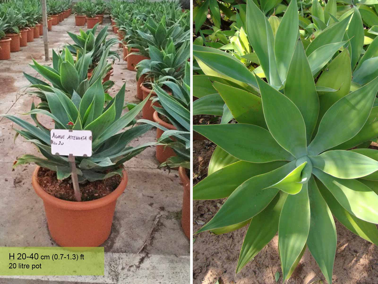 Genus of succulent, mostly native to the hot and dry regions of Mexico southern states of North America, now naturalised to the Mediterranean area. The leaves are arranged in a rosette. They are fleshy with a thorn at the tip and often sharply toothed at the edges. After many years it produces inflorescences of pale yellow, bell-shaped flowers at the end of extremely long stalks. Agave Attenuata – agave in the shape of a tree. Pale green leaves, without thorny edges. Large and striking curved yellow flower in adult plants.