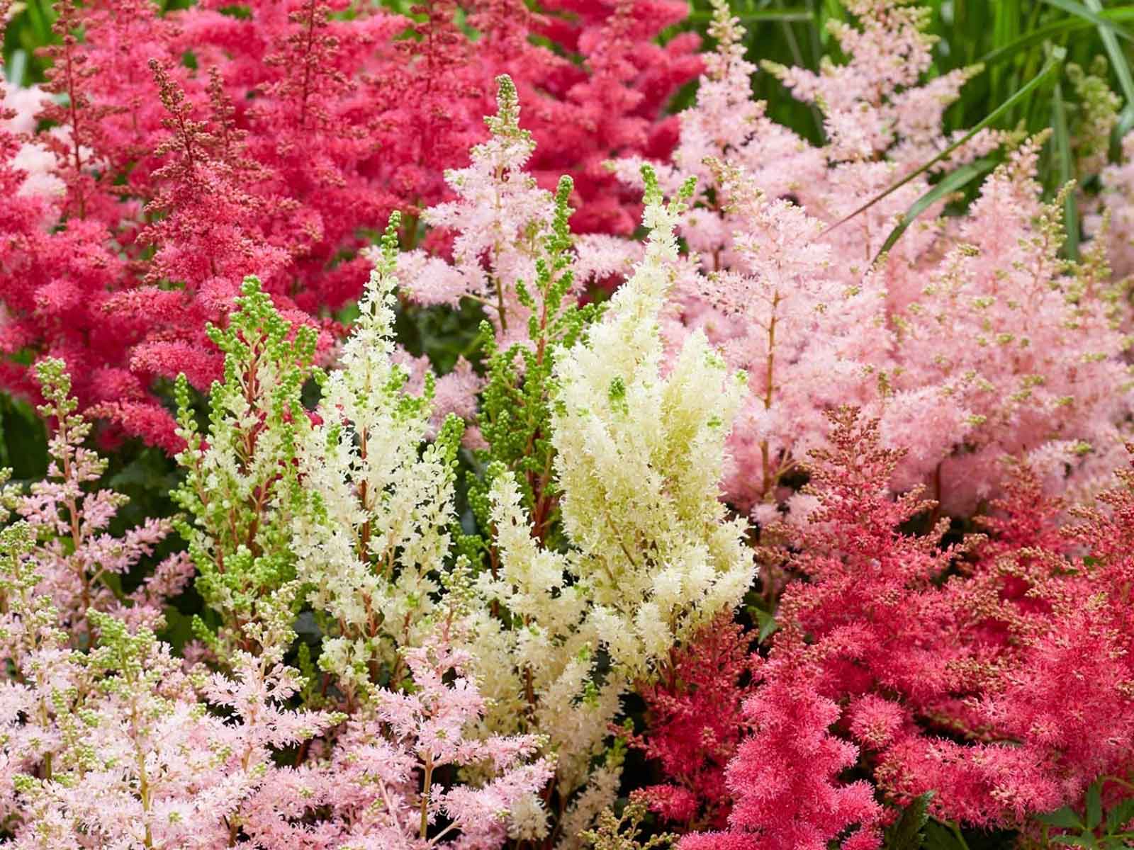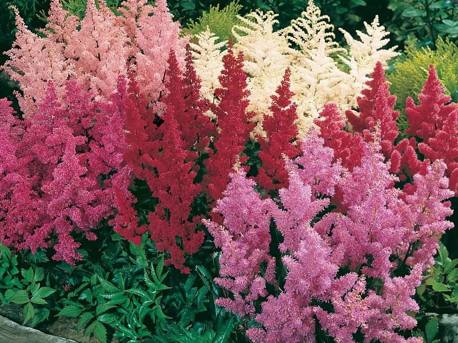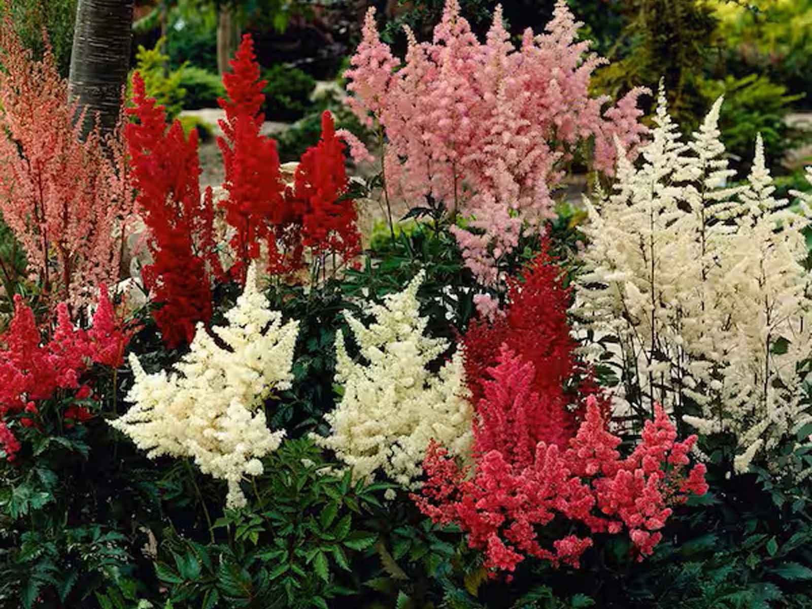 Astilbe Mix is a beautiful selection of free-flowering perennials, featuring feathery, plume-like blooms in a stunning array of colors, including shades of red, pink, white, and lavender. These elegant flowers rise above lush, fern-like foliage, adding texture and movement to shady borders, woodland gardens, and moist areas. Their ability to thrive in partial shade makes them perfect for brightening darker garden spaces.