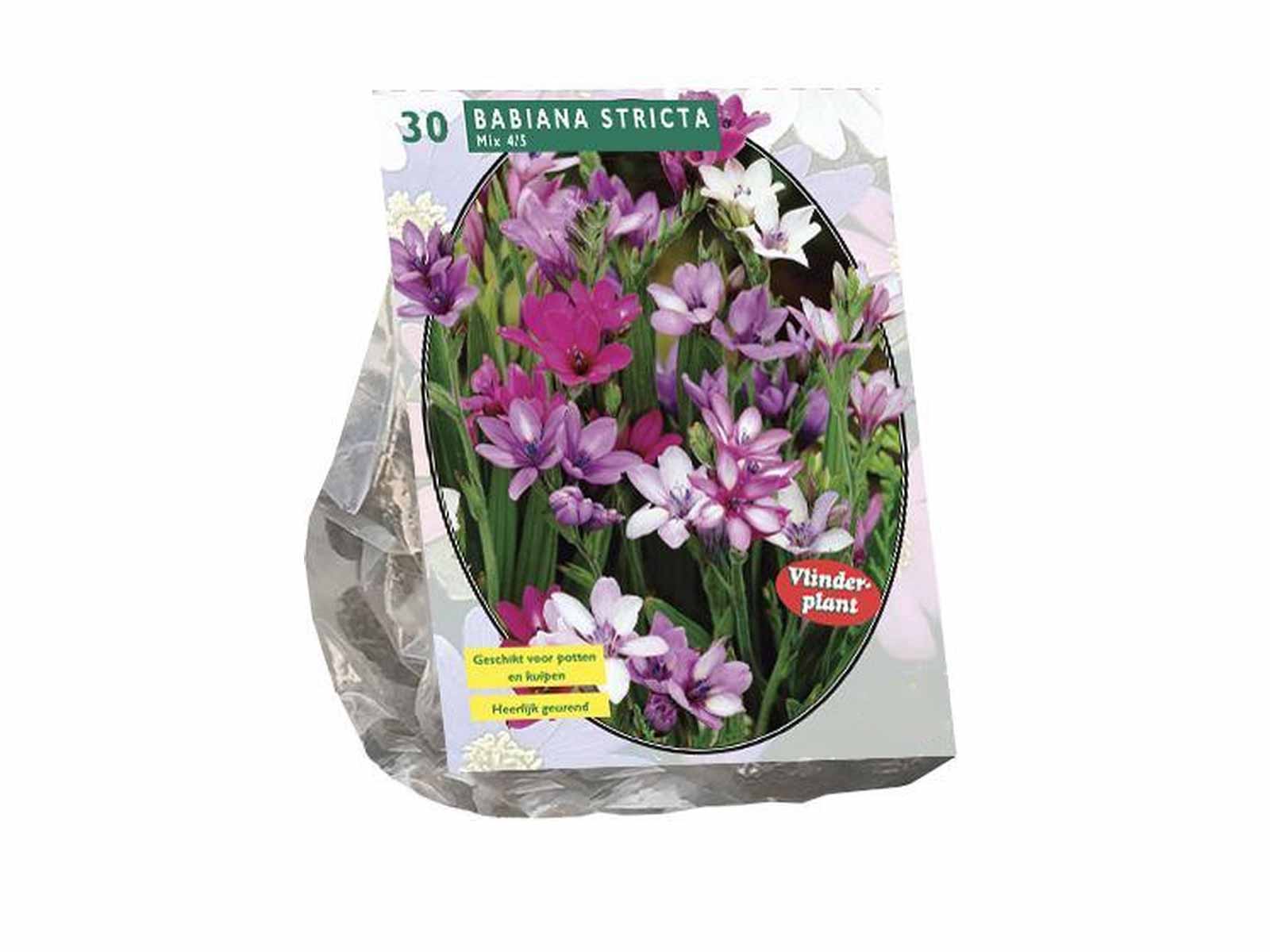 Babiana Stricta Mix is a vibrant selection of free-flowering bulbs, producing delicate, star-shaped blooms in shades of purple, blue, pink, and white. Their lightly fragrant flowers and sword-like foliage make them a striking addition to borders, rock gardens, and containers. Native to South Africa, these hardy bulbs thrive in warm, sunny conditions and bring an exotic touch to any garden.