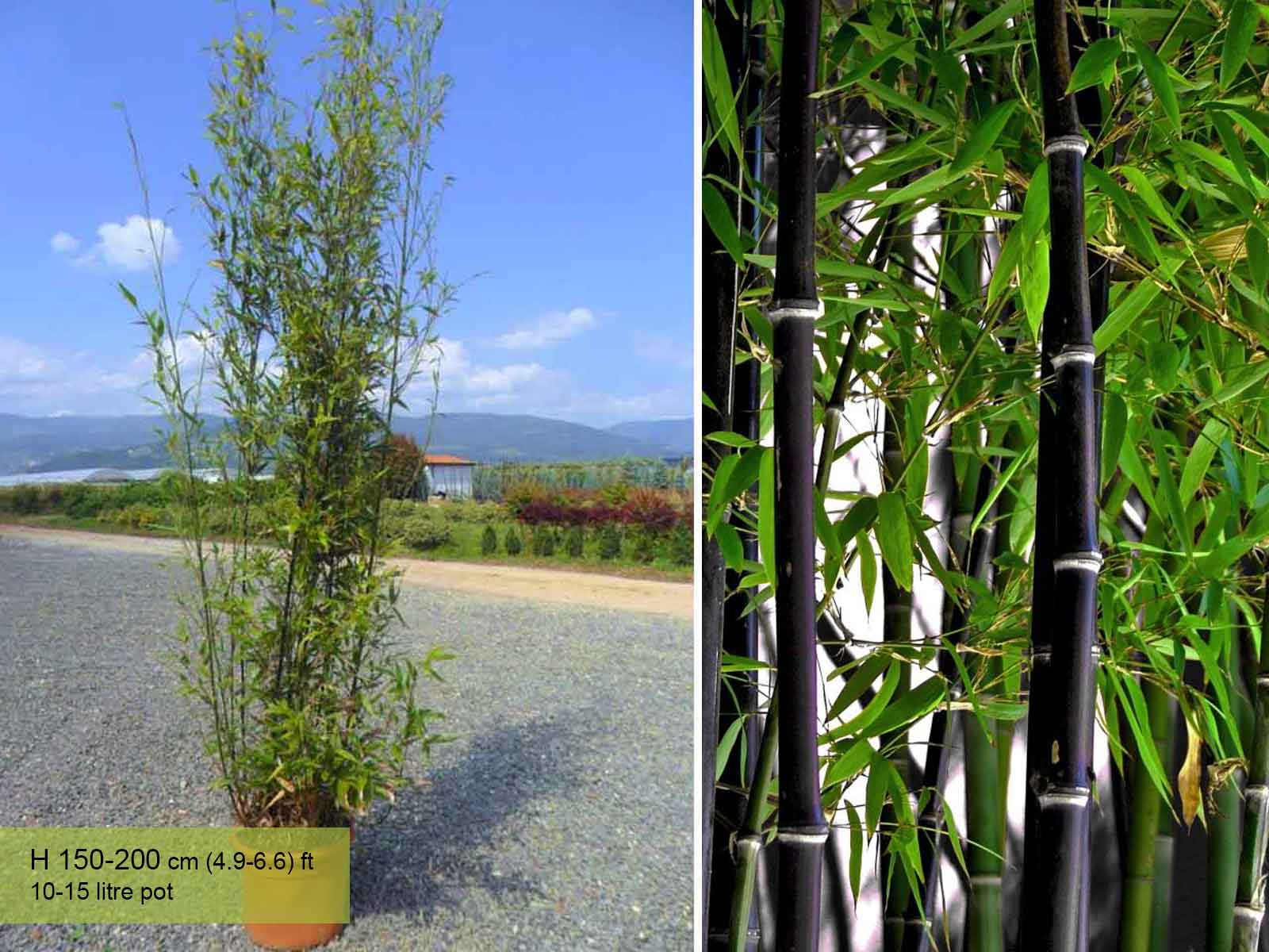 One of the most elegant and distinctive types of bamboo. Its black canes can reach incredible heights.