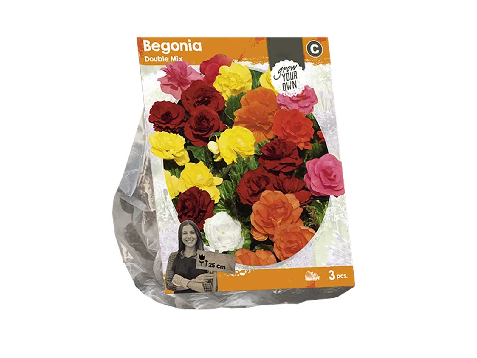 Begonia ‘Double Mix’ is a dazzling collection of double-flowering begonias, featuring lush, ruffled blooms in a vibrant palette of colors—from rich reds and warm oranges to soft yellows, pinks, and whites. These eye-catching flowers stand out beautifully against deep green foliage, creating a lush, romantic effect perfect for brightening up shaded corners of the garden.
