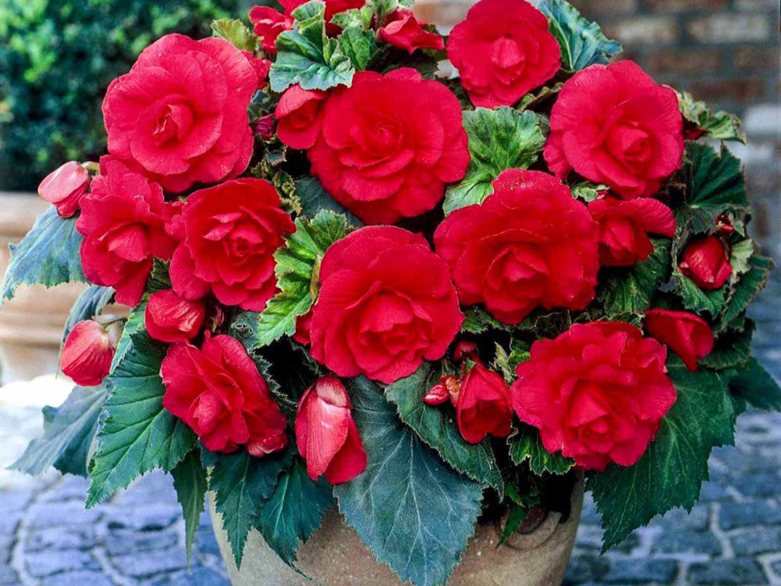 Begonia ‘Double Red’ is a stunning, free-flowering variety with large, fully double blooms in a rich, velvety red. Its lush, ruffled petals create a dramatic and elegant display, making it an excellent choice for borders, beds, and containers. Thriving in shaded and semi-shaded areas, this begonia brings vibrant color to spots where other flowers may struggle.