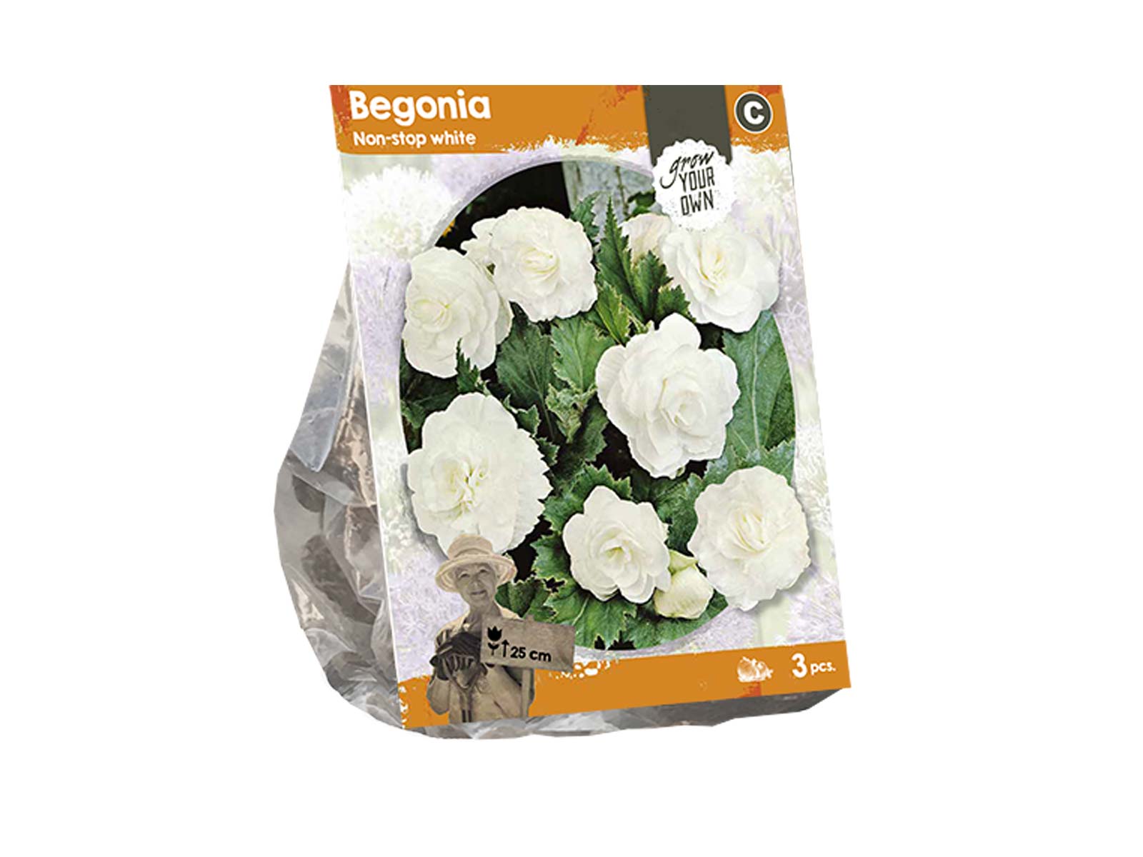 Begonia ‘Non-stop White’ is an elegant variety that dazzles with pure white, rose-like blooms set against lush green foliage. Its crisp, bright flowers bring a sense of freshness and light to shaded garden spots, creating a graceful and serene visual impact. Ideal for containers, beds, borders, or hanging baskets, this compact plant adds timeless charm wherever it’s planted.