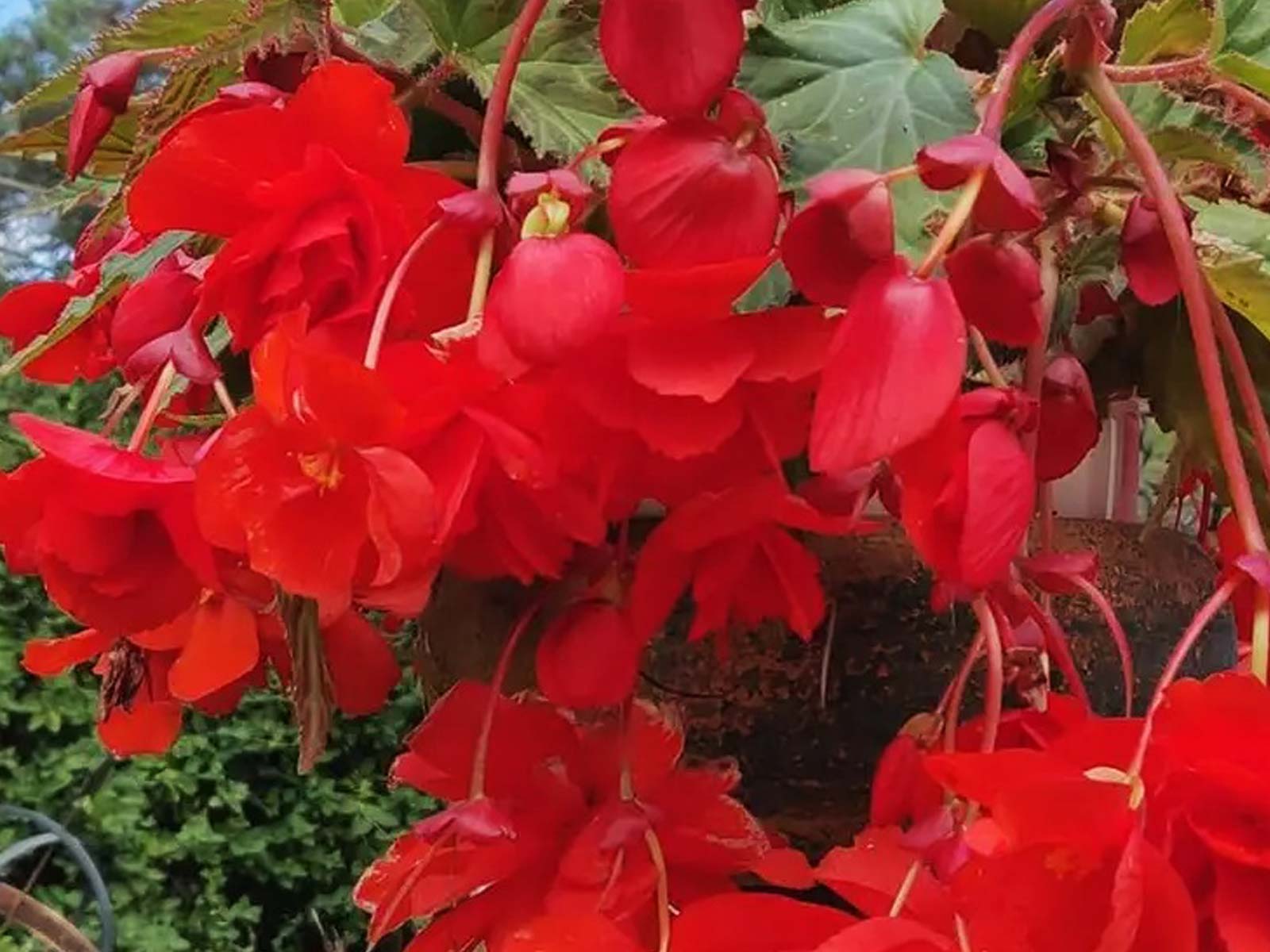 Begonia ‘Pendula Red’ is a cascading, free-flowering variety with large, fully double blooms in a striking, velvety red. Its trailing habit makes it ideal for hanging baskets, window boxes, and containers, where its arching stems spill over beautifully, creating a dramatic, flowing display. Thriving in shaded and semi-shaded areas, it adds bold color and elegance to any garden setting.