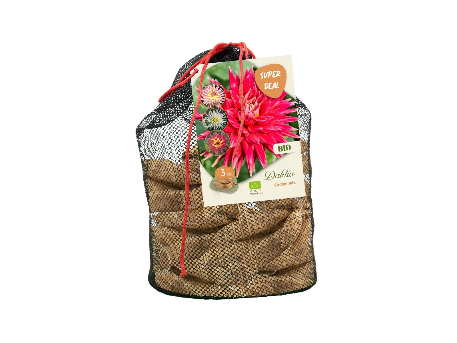 Bio Dahlia Netlon – Cactus Mix is a striking selection of dahlias with spiky, fully double blooms in a variety of bold and vibrant colors. With their unique, rolled petals and dramatic starburst shape, these dahlias add texture and movement to borders, beds, and cut flower arrangements. Their long-lasting blooms create an eye-catching display throughout the season.
