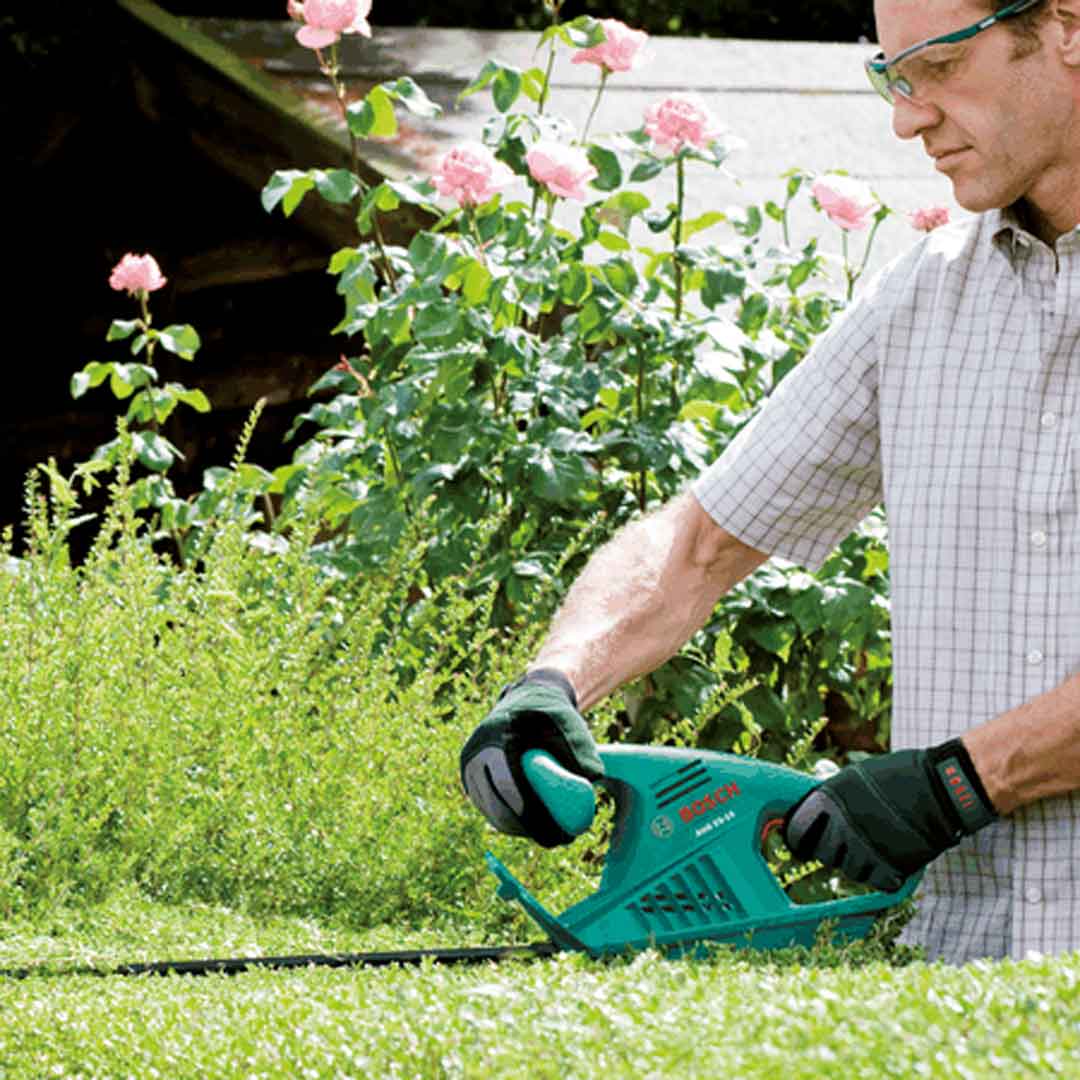 Bosch AHS 50-16 hedgecutter is ideal for light trimming and trimming small hedges. This lightweight 2.6 kg model features an ergonomic design for extra control and sure handling in any working position. Featuring a high-speed 450W motor clean, fast and easy cuts with a 50cm blade and 16mm tooth spacing reaches difficult angles easily. Perfect for trimming small branches and hedges of up to 1.5 m in height.