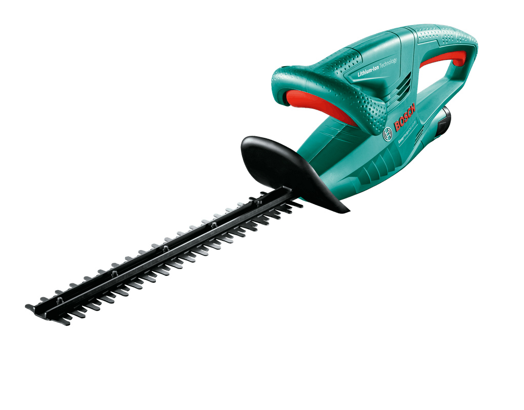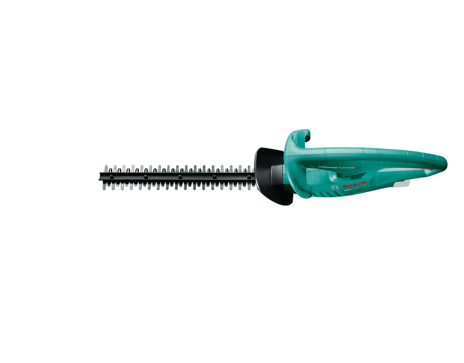 The easy hedgecut 12-35 from Bosch provides powerful cordless cutting performance for up to 50 minutes thanks to it 12V / 2.5 Ah lithium-ion battery. The 35 cm diamond ground blade makes clean and precise cuts on smaller hedges whilst the patented “Anti blocking system” from Bosch ensures a continuous cut. Optimum balance and ergonomics enhances comfort and control while working. At only 1.9kg the easy hedgecut minimizes the strain on the arms and back whilst working.