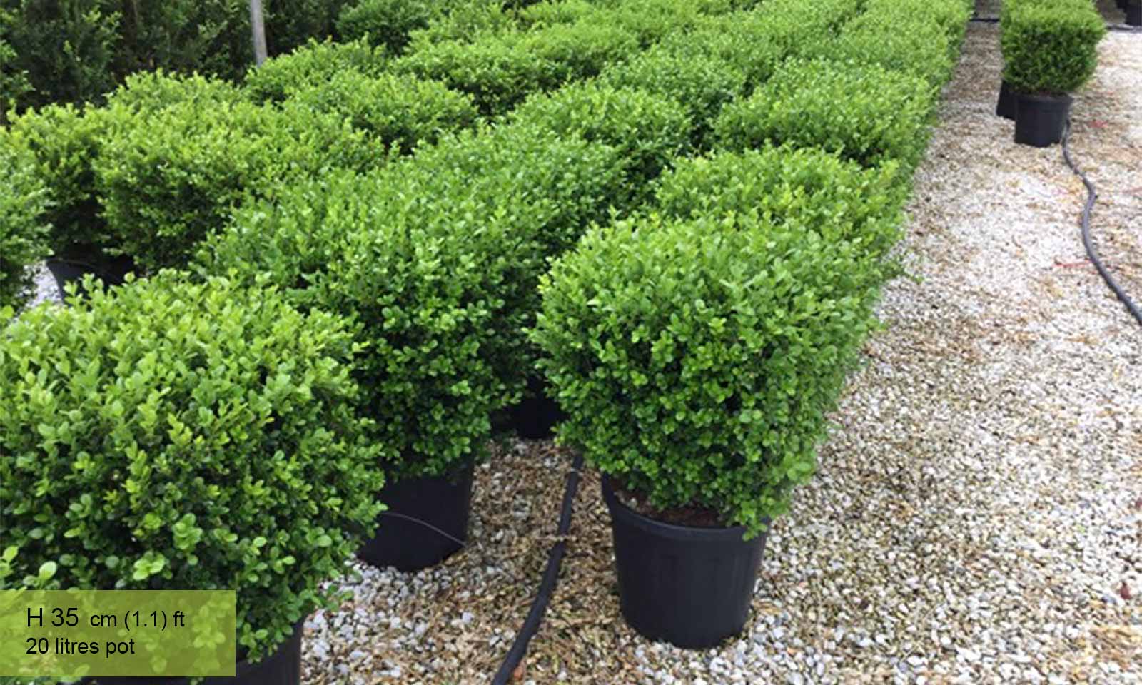 Maintenance: Trimming and shaping each year in early-spring. Protect against Box Blight, Box Rust and Caterpillars.