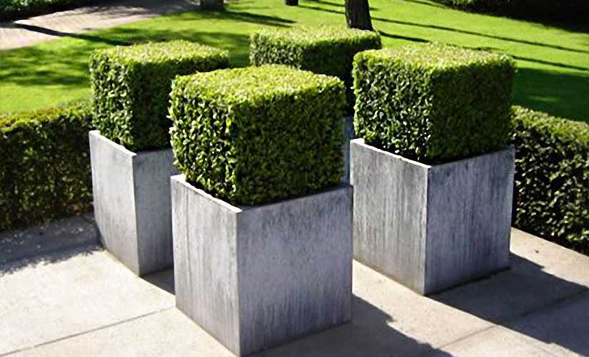 Cube topiary shaped from Buxus Microphylla Faulkner.