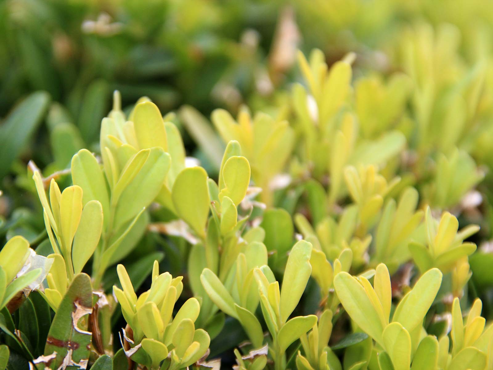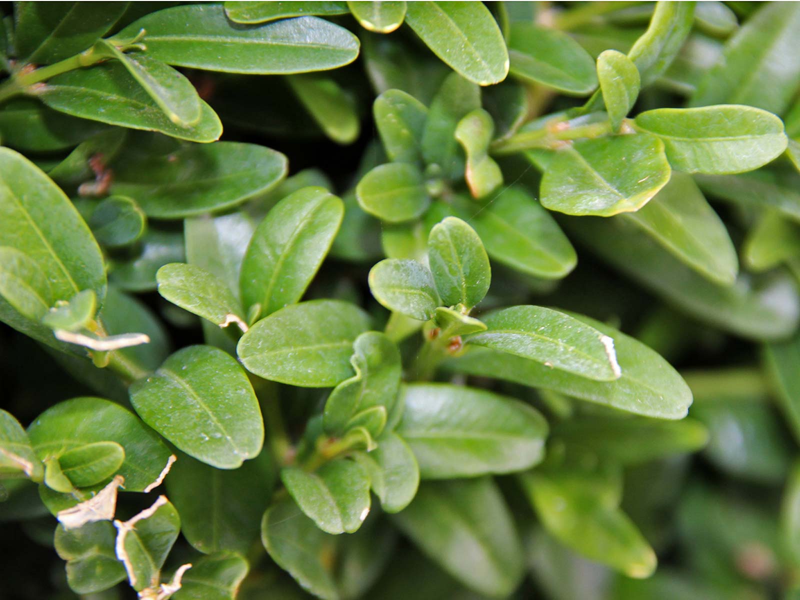 Evergreen shrub, sometimes a small tree which has dense branches which start from the base. Upright habit, rather narrow in the first years, then spreading out. Green, quadrangular branches when young, round and grey later. Opposite leaves, oval-lanceolate, leathery, slightly notched at the tips, deep, bright green, paler on the underside, 2-3 cm long, 1-1.20 cm wide. Flowers in March-April, not very beautiful but attractive to bees, greenish-yellow in axillary racemes. Fruit: greenish- blue capsules containing seeds. Grows well in any type of soil, even calcareous, as long as it is fertilised and well drained. Tolerates full sun if it is not combined with dry soil. Withstands any type of pruning and it is one of the shrubs most used for hedges, evergreen mazes and topiary sculptures. Together with Taxus Baccata it is one of the most popular plants in formal English gardens.