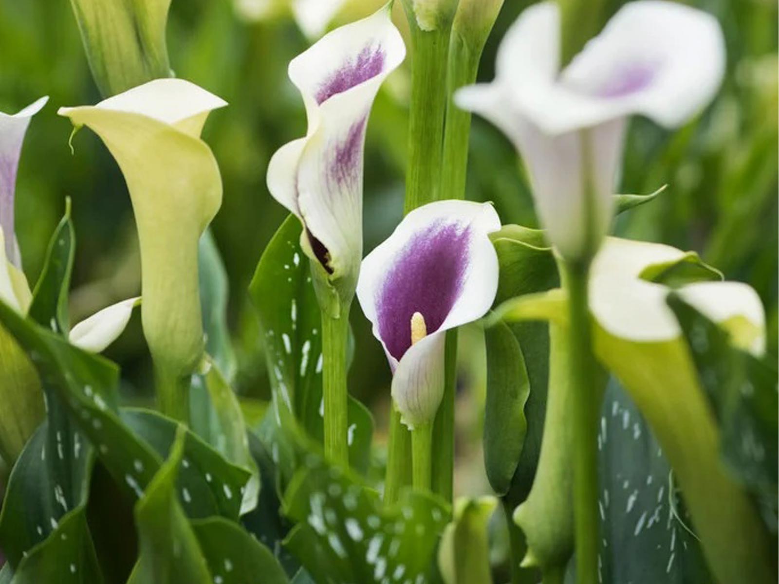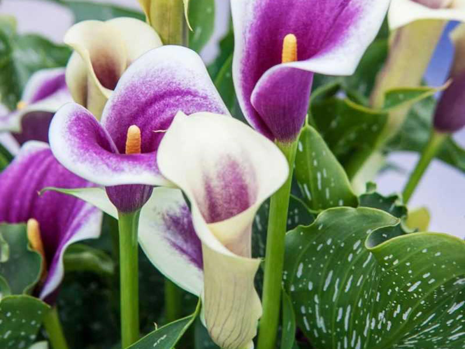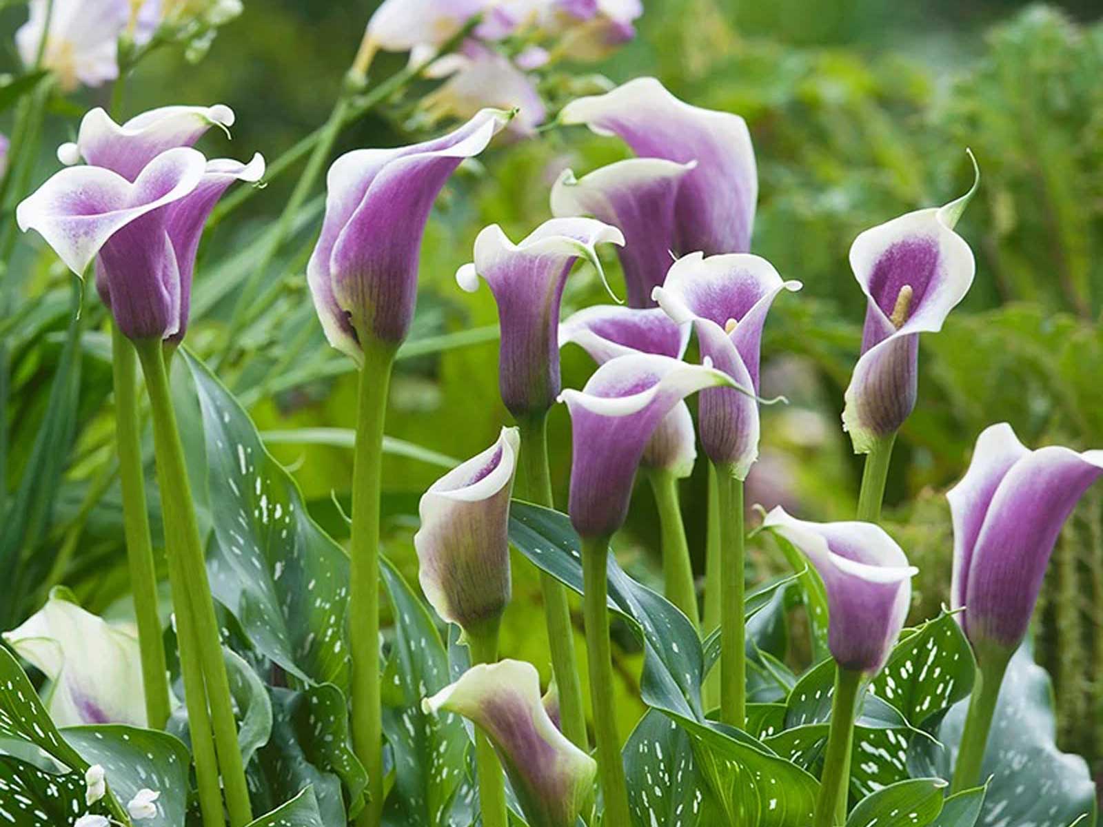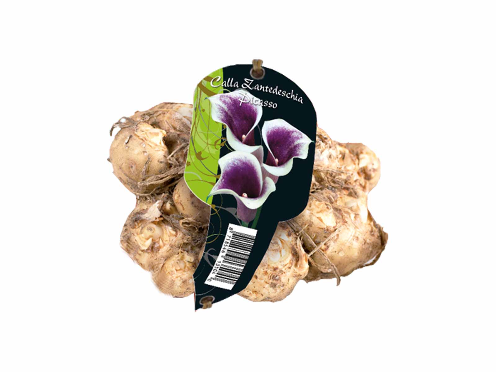 Calla Zantedeschia ‘Picasso’ is a uniquely elegant variety with soft cream-white blooms kissed with rich purple throats, creating a beautiful, painterly contrast against lush green foliage. Its distinctive, trumpet-shaped flowers and refined form lend a sophisticated and exotic charm to borders, beds, and containers. This eye-catching variety brings subtle drama and artistic flair to any garden setting.