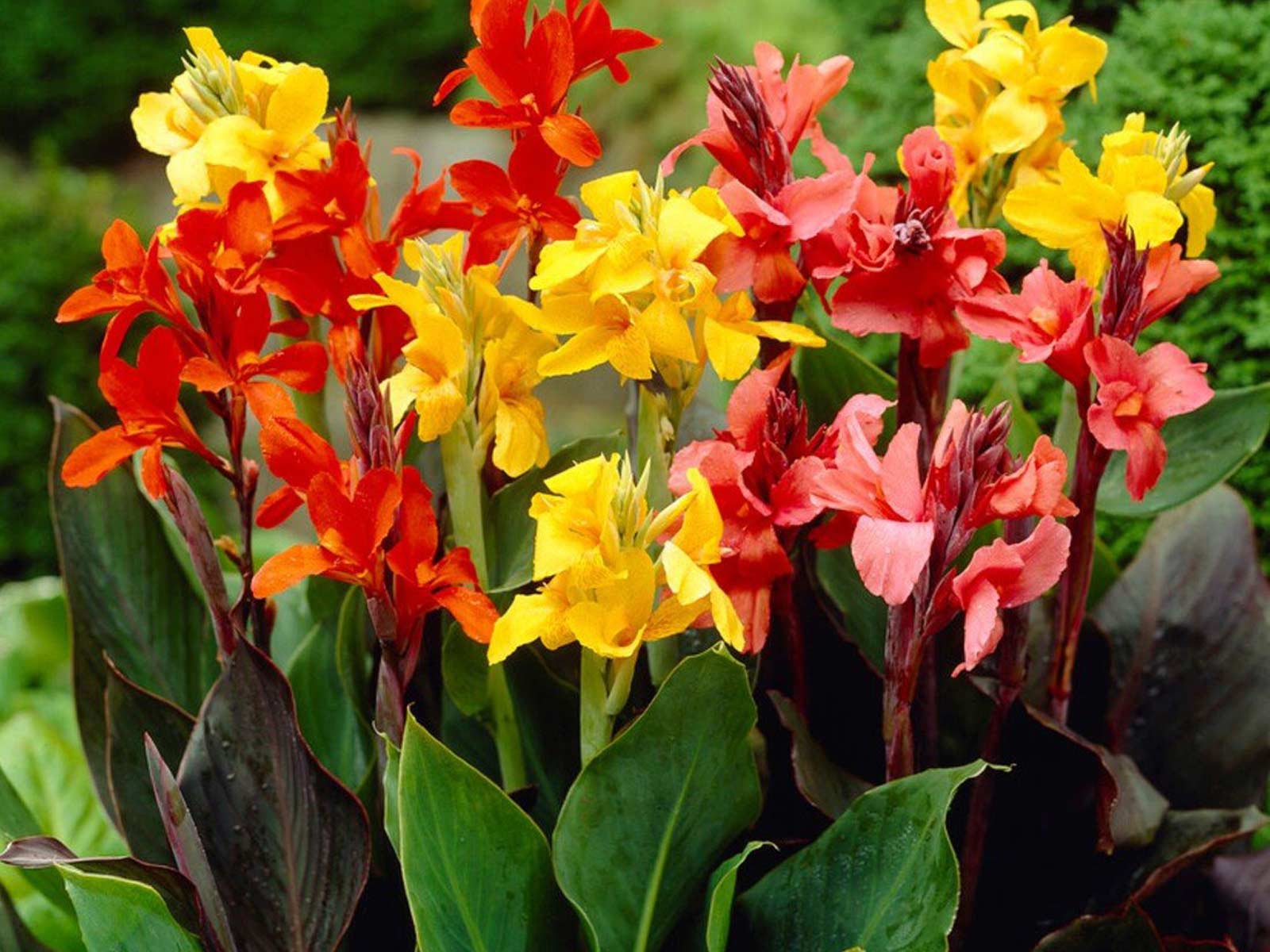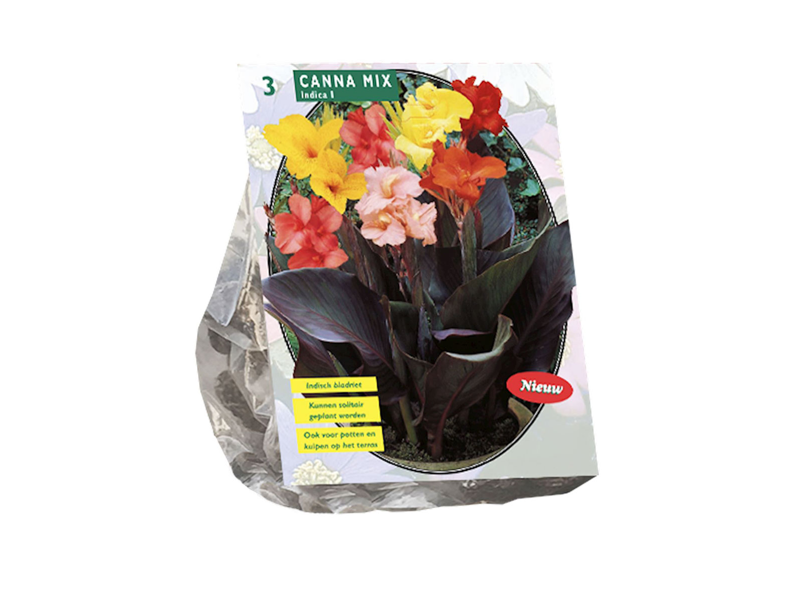 Canna Mix is a vibrant collection of canna lilies, featuring large, tropical blooms in a stunning array of colors, including red, orange, yellow, and pink. With their lush green or deep bronze foliage and tall, upright growth, these cannas add bold color, texture, and height to borders, beds, and containers, creating an exotic and eye-catching display.