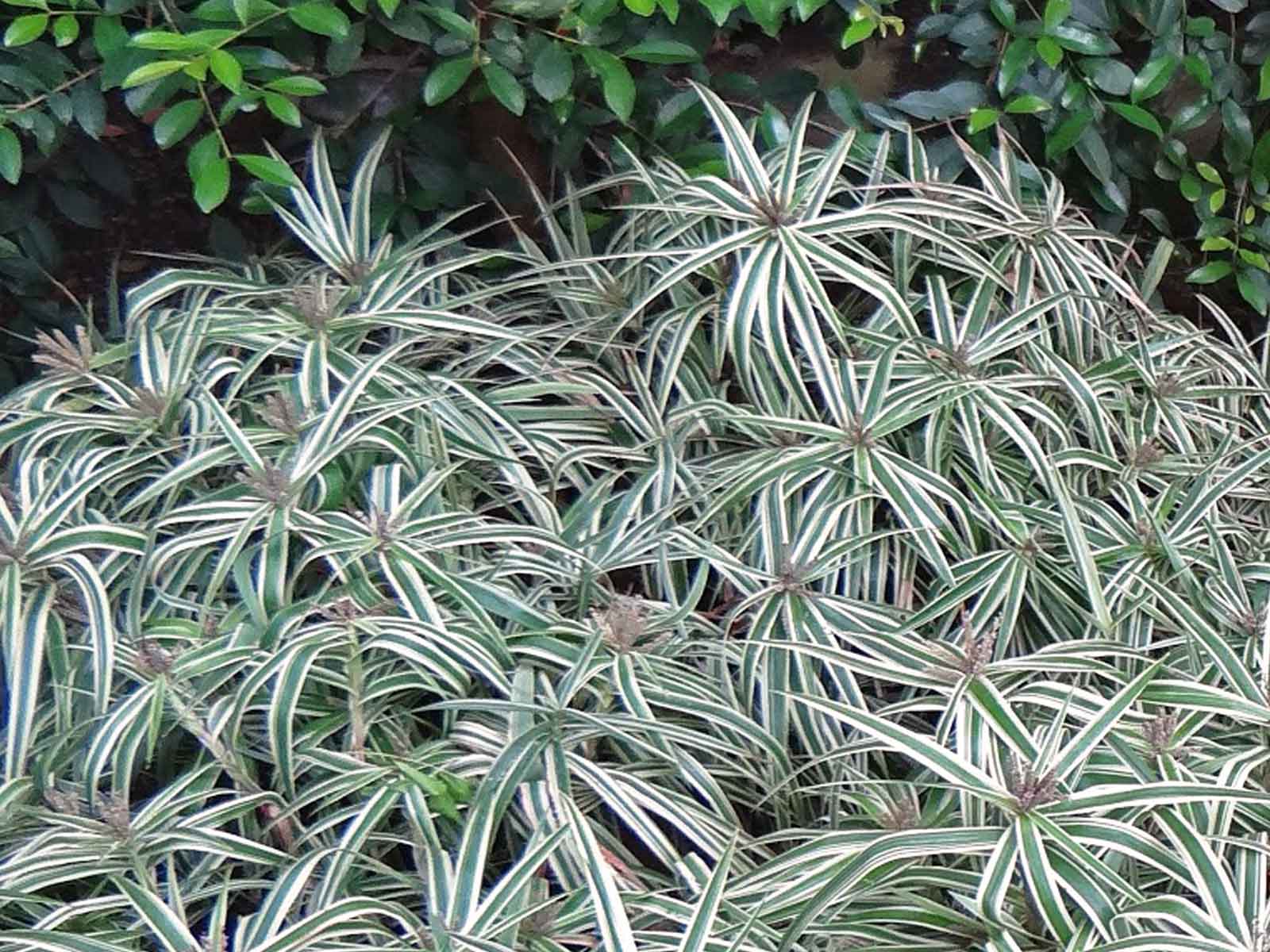 Strong green stems grow outwards from the core in all directions, at their tips, brightly patterned leaves ‘explode’ into a star shapes. The green pigment and white edges of the Sparkler Sedge’s leaves really do bring some excitement to a flowerbed, as they ‘pop’ against the dark colour of the soil. Like other members of the Carex family, it produces feathery brown flowers in late summer.