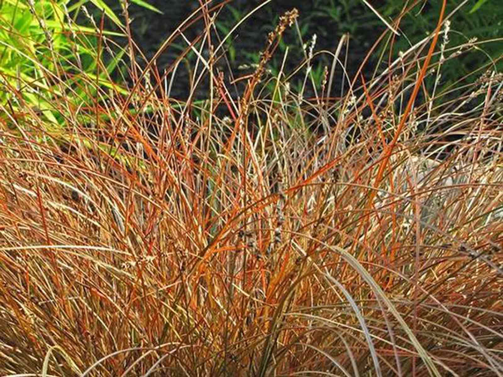 The Cappuccino Sedge provides a fountain of colour and interest all-year-round. It’s thin straw-like leaves start out green as they appear in spring, before turning a reddish brown in summer and then paling to tan in the winter. Brown flowers also appear in late summer, but they are hard to spot against the similarly coloured leaves.