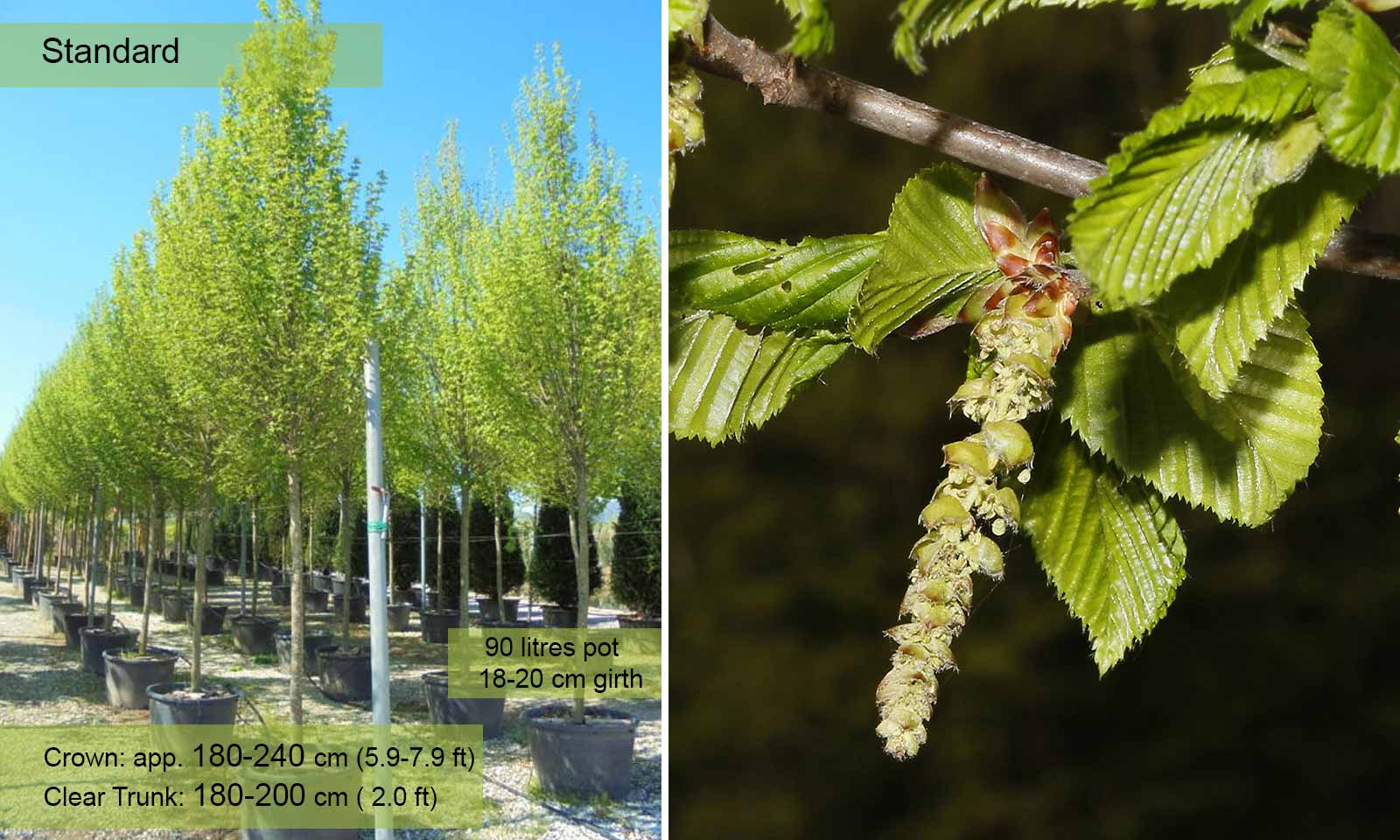 The Carpinus Betulus, also commonly known as the European or Common Hornbeam, is a plant that is native to several regions including Asia, Europe and even Southern England. The plant was once known as “Yoke Elm”. The plant itself has an extremely high hardiness rating of H7 and when planted in well drained soil, makes for an incredibly sturdy plant all year around. The plant itself is a very fast grower at about 30 cm (11.8 inches) to 60 cm (23.6 inches) each year. It is advised to give this plant a trim once a year. The true beauty of this plant is seen in the Autumn when the leaves become a very beautiful brown and yellow colour. Take care of any potential pests and diseases so make sure to maintain well.