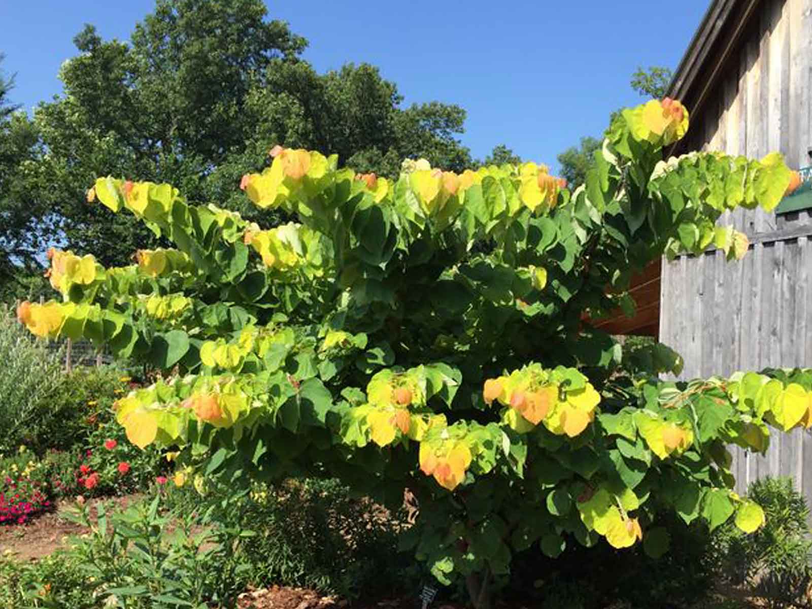 In early spring, it bursts into life with masses of pink blossoms along its branches before the leaves even emerge. As the season progresses, the real magic begins — its heart-shaped foliage unfurls in shades of gold, orange, and lime green, creating a spectacular multi-tonal effect.