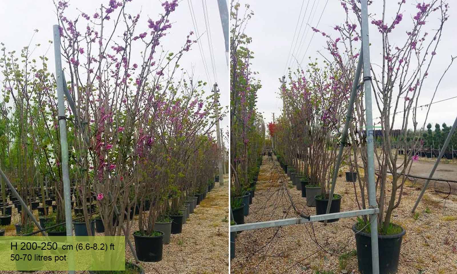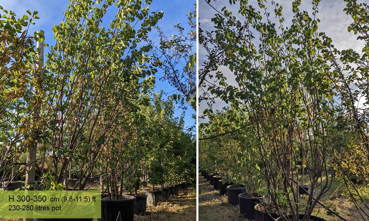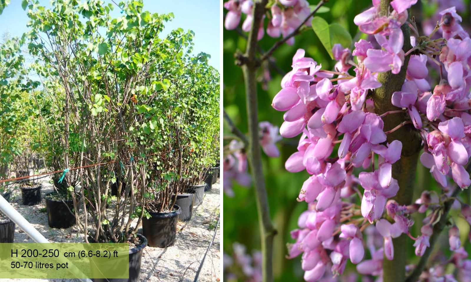 Large deciduous shrub or small tree, typical to the Mediterranean region. Upright habit when the plant is young, later the branches spread out and it looks almost always round, often picturesque. Heart-shaped leaves, 8-10 cm, light-green. Small lilac-pink flowers grouped on the previous year’s branches. Flowering begins in April on bare branches and ends with the appearance of the first leaves. Fruit follows the flowering, long pods which are green at first, brown when ripe and remain on the plant for many months. One of the best species for chalky dry soils. Also withstands extreme temperatures – hot, dry summers and cold winters.
