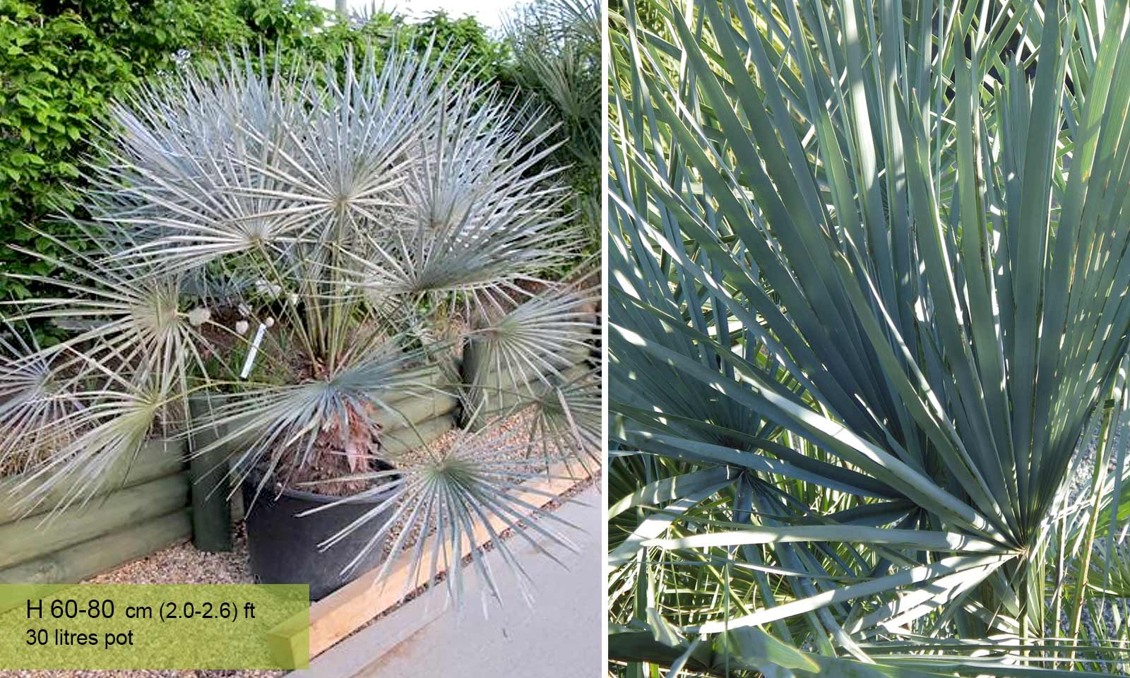 English Name: Blue Mediterranean Fan Palm, Morrocan Fan Palm, Blue Leaves