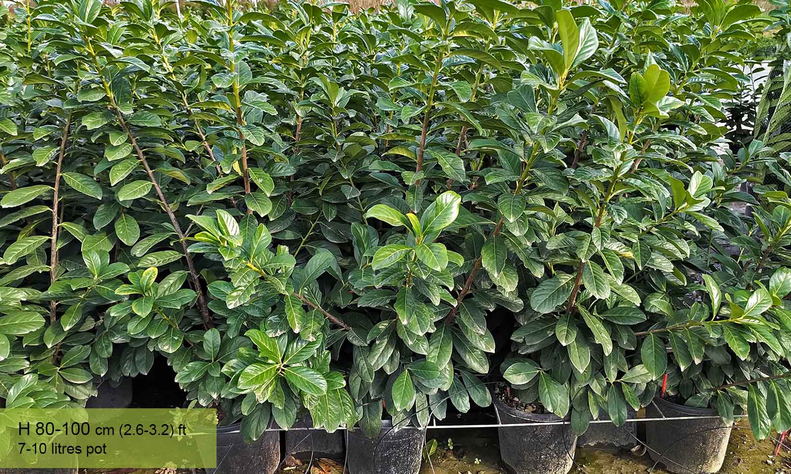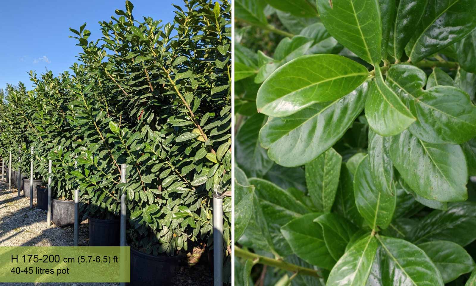 New variety selected in Holland, considered an improved Prunus Laurocerasus ‘Caucasica’, because of its longer, more coriaceous leaves, of a brighter green. Flowers whiter than Prunus Laurocerasus ‘Caucasica’. Held also to be more resistant to disease. Tolerates all positions but in complete shade it requires plenty of light. Withstands severe and repeated pruning and it is one of the most popular plants used for hedges, both clipped and left to grow freely. Withstands the cold and if it suffers damage from an unexpected hard frost it will vigorously form re-growth at the base. Very decorative shaped into a half standard and also as a standard.