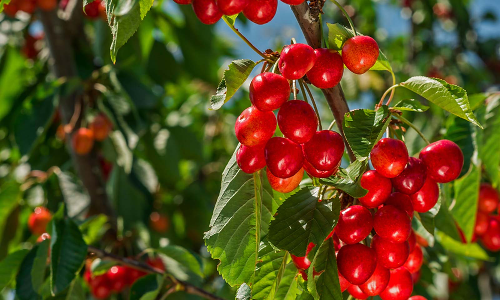 A self-fertile, late-season sweet cherry variety known for its large, dark red fruits with a juicy and sweet flavor. Ideal for home gardens due to its reliable fruiting and attractive spring blossoms.