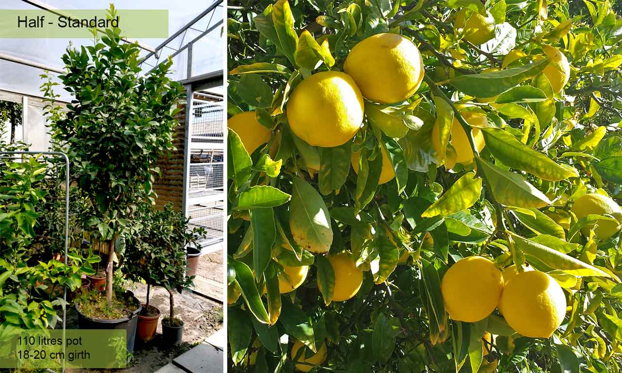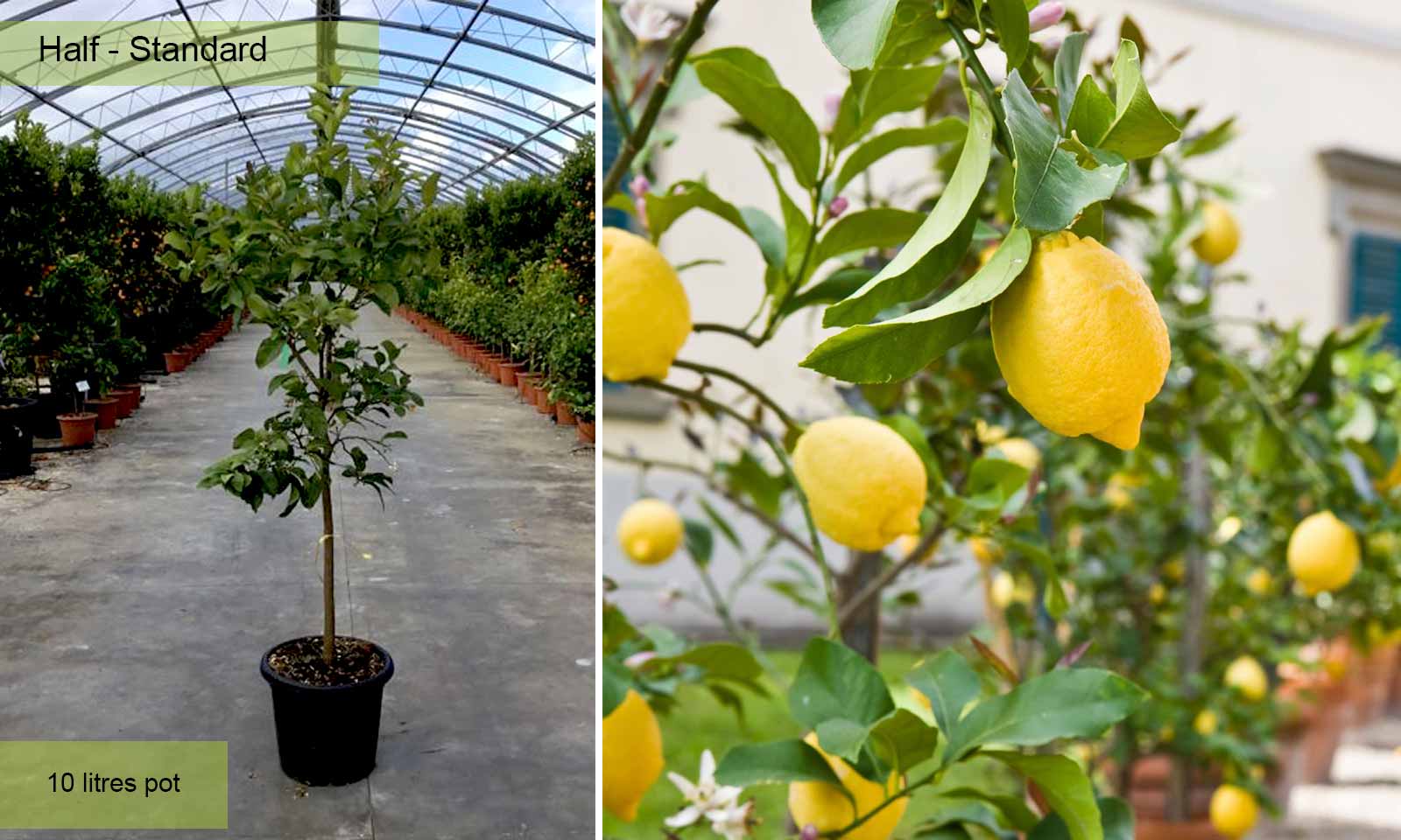 Our version of the lemon trees is now in Espalier fashion. Citrus are self fertile so once you have planted, a single plant should be able to produce fruit. The plant itself likes a lot of sunlight so feel free to let it grow outdoors during pleasant weather. However, bear in mind that the plant has a very low tolerance to cold and only comes up as H1c on the rating score, so make sure to keep some fleece or anything else you have at hand to keep the plant warm if the temperature suddenly drops at night time. It can be a good idea for year long growth to have an insulation room in your house with a strong UV light to help continue growing the plant. For maintenance, minimal pruning is required. Mature plants though may produce unwanted, fast growing shoots called “water shoots”. Remove these whenever possible. Be especially watchful for shoots below the graft of the main stem and remove such shoots immediately. Pests and disease can also be a problem with this plant so do take care.