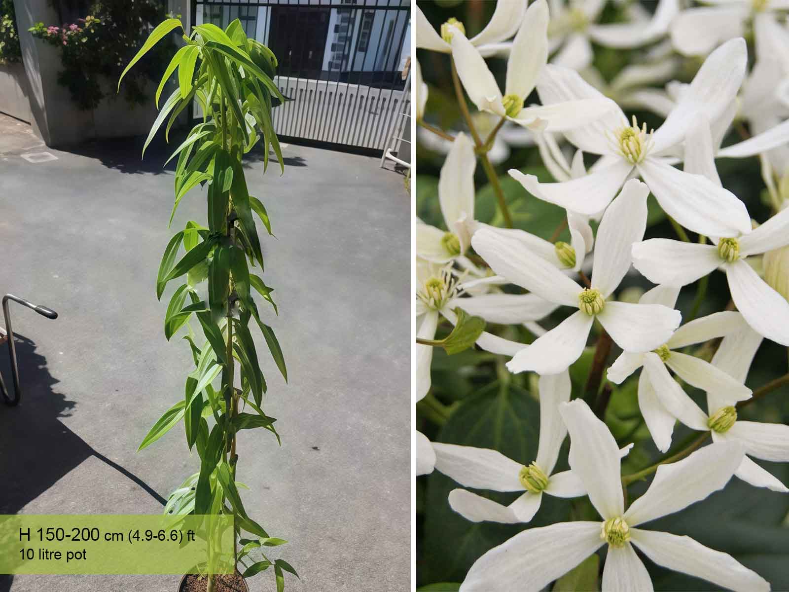 Clematis armandii is a stunning evergreen climber celebrated for its abundant, fragrant white flowers that appear in early spring, filling the garden with a sweet, jasmine-like scent. This vigorous climber is ideal for covering fences, trellises, pergolas or walls, adding both elegance and privacy.