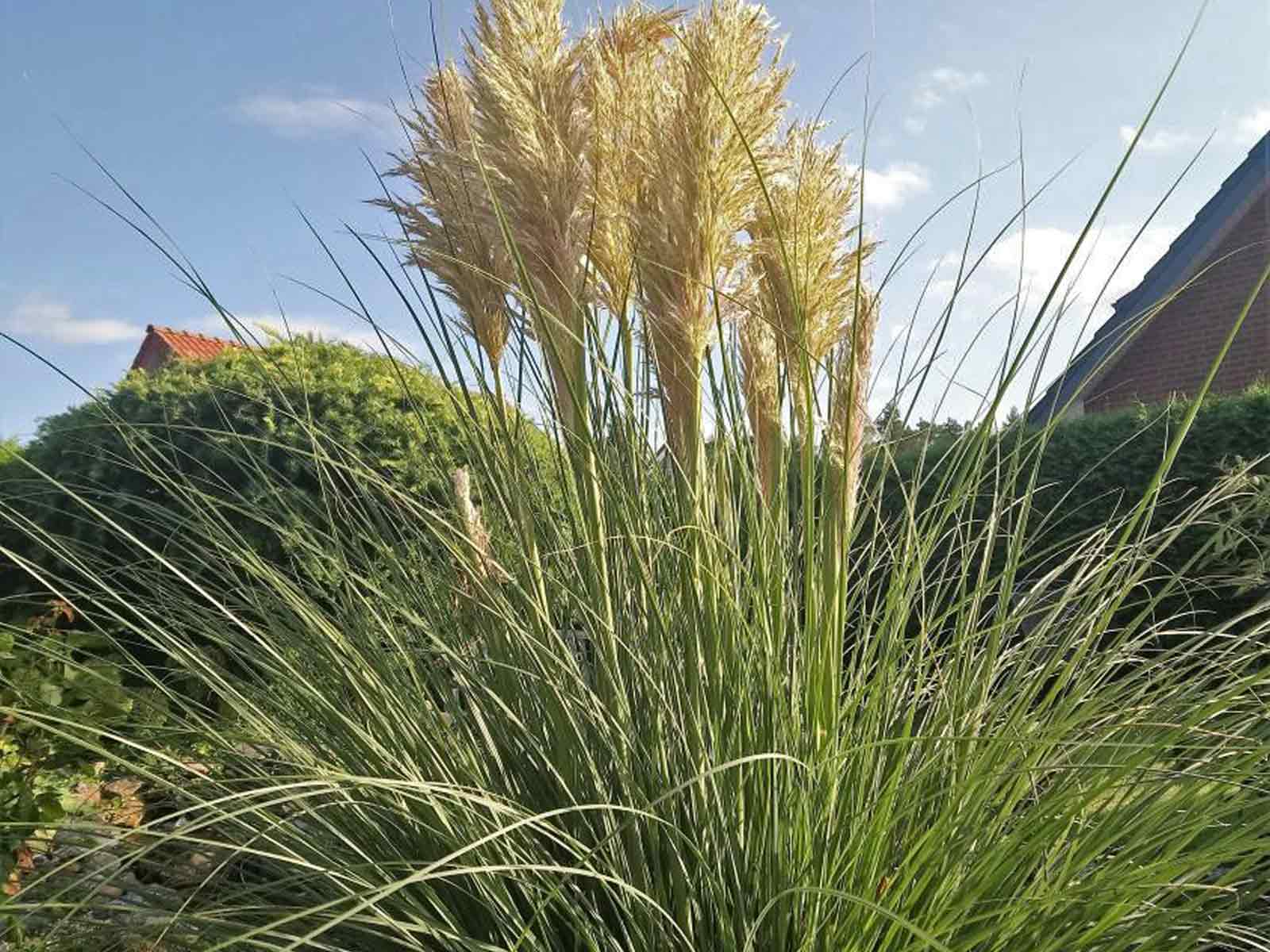 Please note, we can not guarantee flowers on Pampas Grass on the day of delivery. Usually Pampas Grass start flowering when its more established in the garden. While some plants might be in flowers on delivery date, we can not guarantee that for every delivery. It might take one or two extra seasons even if you order plants in 18 litre containers.