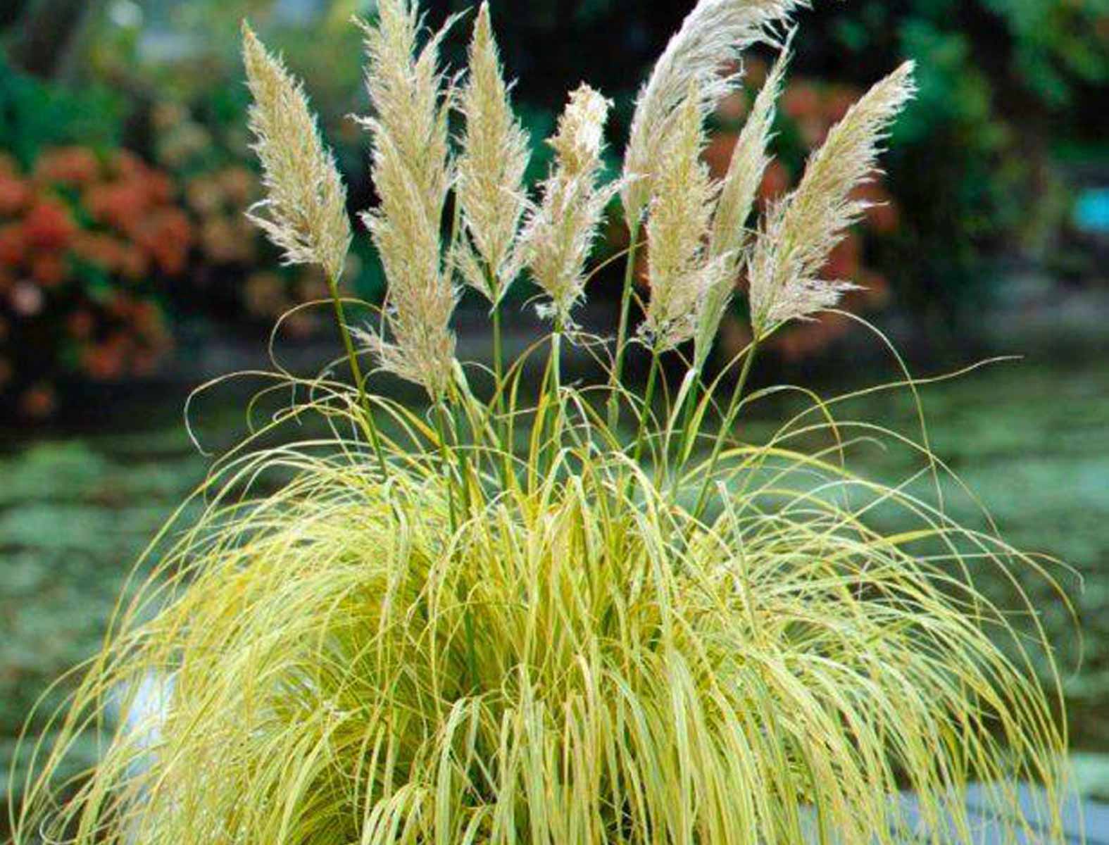 The shortest pampas grass we sell, but still impressive when its sunshine-yellow flowers reach 150cm.