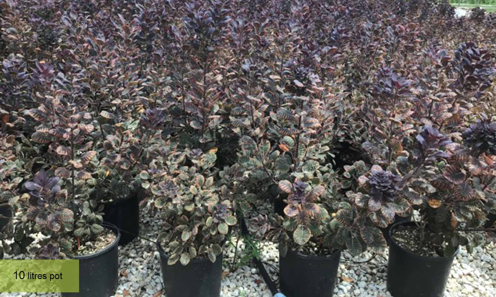 Plant Smoke Tree ‘Royal Purple’ in a sunny or partially shaded location. Full sun is ideal for the best foliage color, but it can tolerate light shade. The plant prefers well-draining soil but is adaptable to various soil types, including sandy, loamy, and clay soils. Good drainage is essential to prevent root rot.