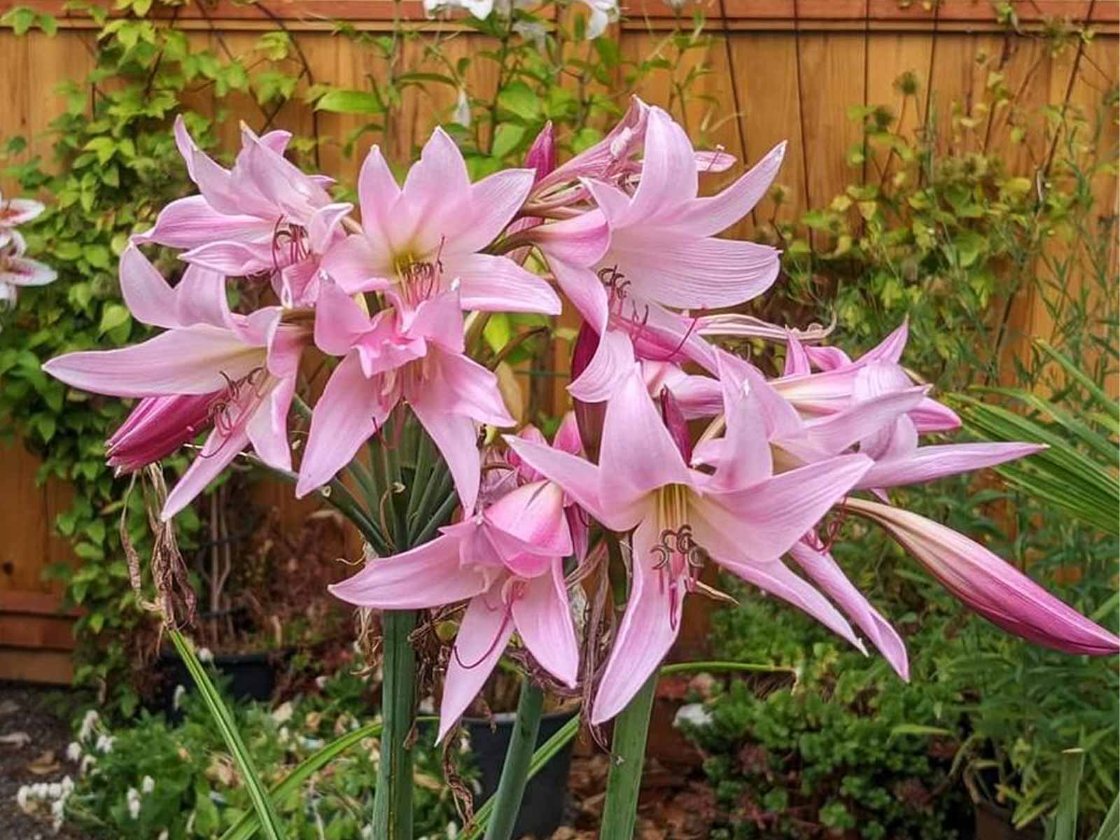 Reaching a height of 40–59 cm (16–23″), it thrives in moist, well-draining soil and prefers full sun to partial shade for optimal growth. In colder climates, bulbs should be lifted and stored over winter to protect them from frost. Expect a beautiful display of delicate pink flowers from mid-summer through early autumn!