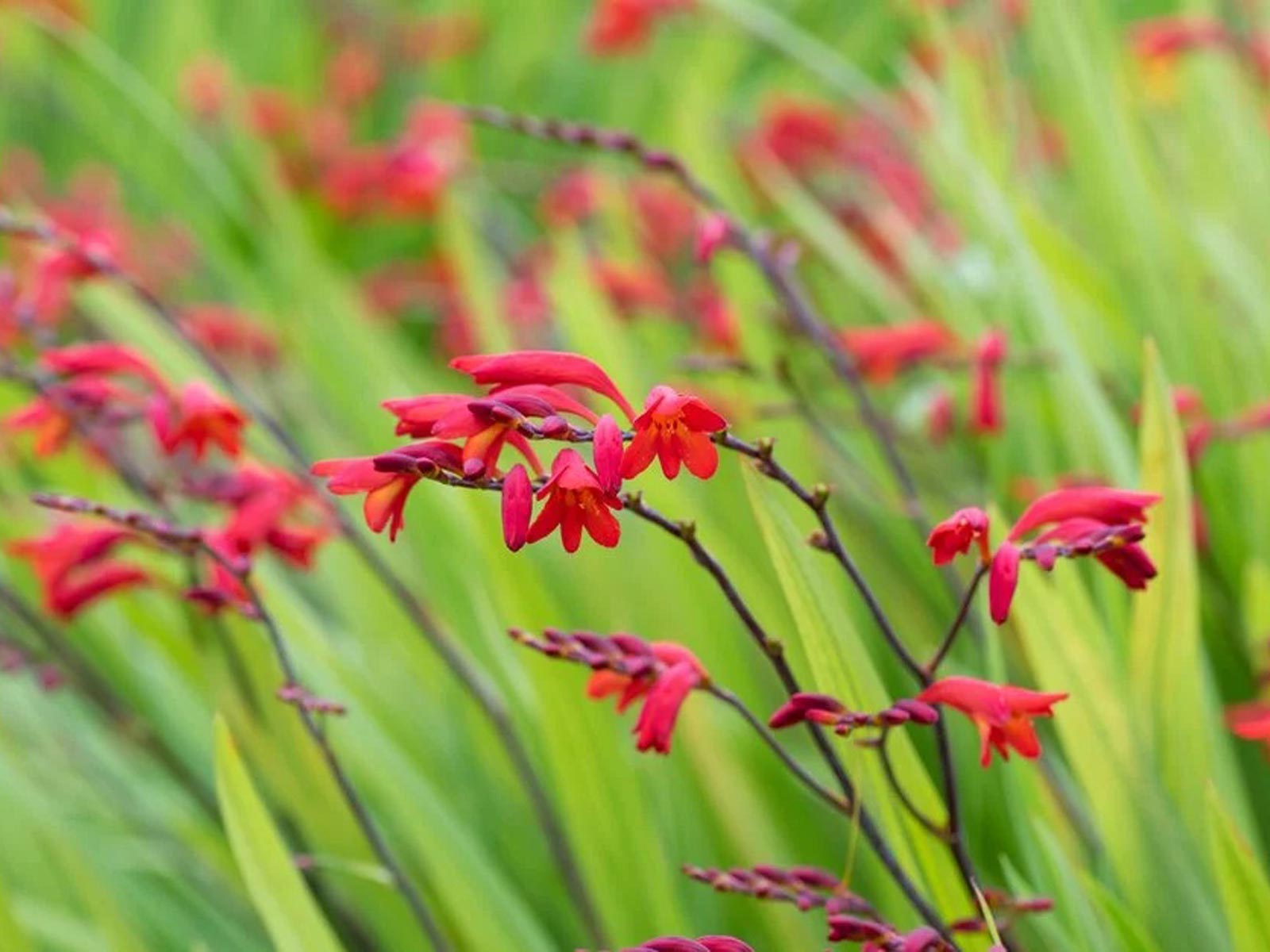 Crocosmia ‘Emberglow’ is a striking perennial known for its rich, deep red-orange blooms that gracefully arch above lush, sword-like green foliage. Its elegant, trumpet-shaped flowers create a warm, fiery display, making it a perfect choice for borders, beds, and cottage gardens. Loved by pollinators, this variety attracts bees and butterflies, bringing movement and life to the garden.