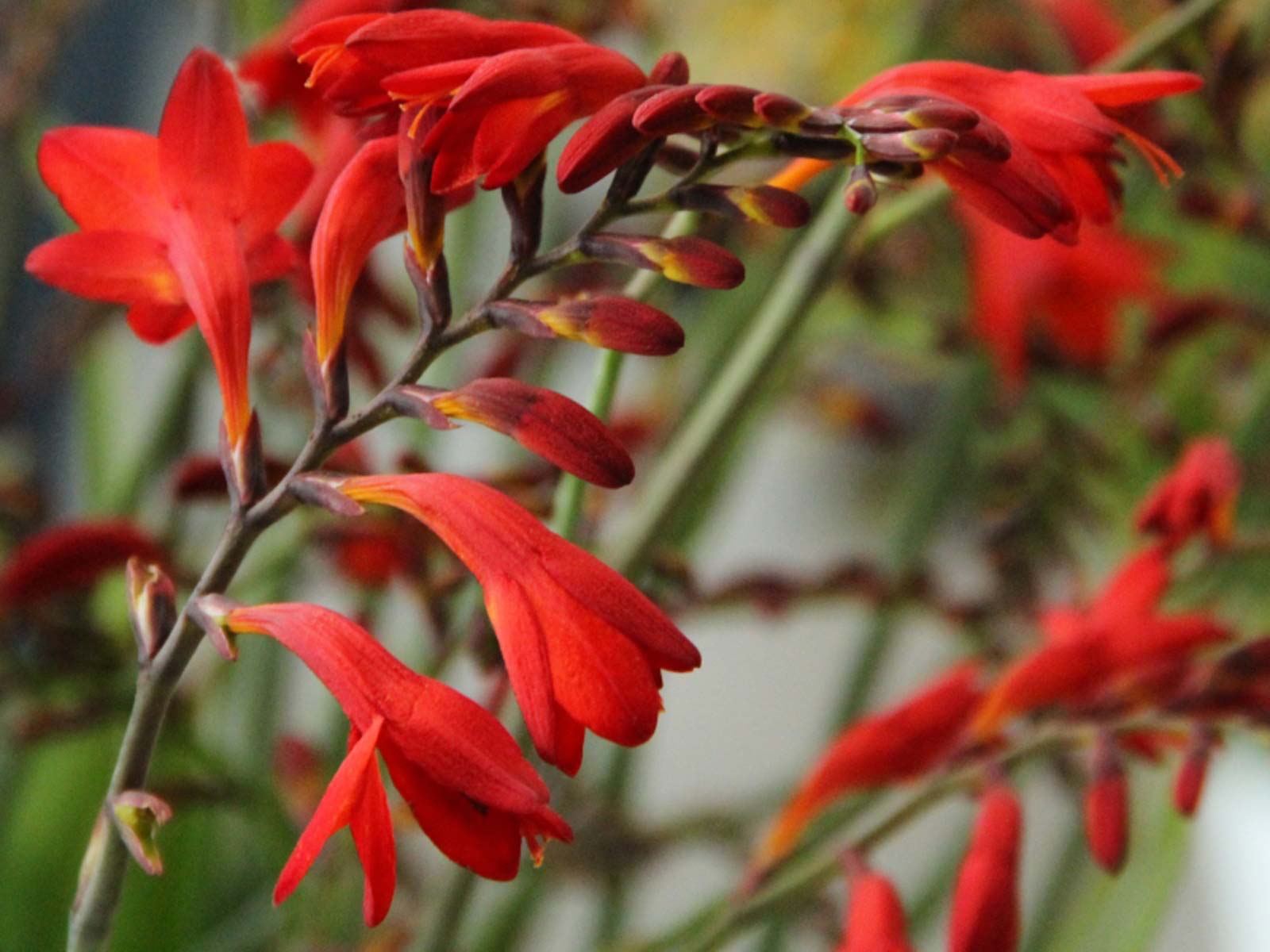 Reaching up to 70-90cm (28-36″) in height, it thrives in moist, well-draining soil and prefers full sun to partial shade. Hardy and easy to grow, Crocosmia ‘Emberglow’ blooms from mid to late summer, adding a vibrant and long-lasting burst of color to the garden year after year!