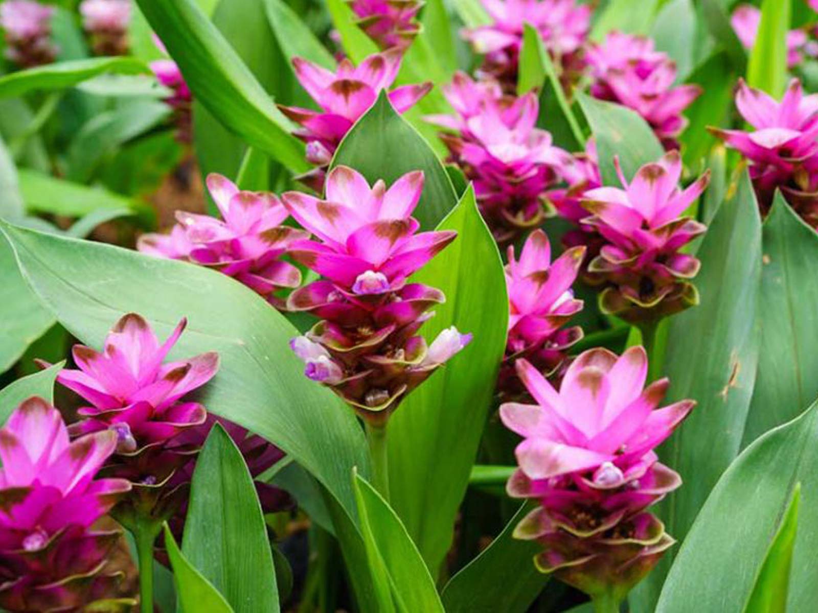 Curcuma ‘Pink’ is a stunning tropical variety known for its elegant, pink cone-shaped blooms that sit proudly atop lush, upright green foliage. Its exotic appearance and vibrant color make it a standout choice for borders, beds, and containers, bringing a touch of the tropics to any garden setting. This eye-catching plant adds both visual interest and a refined elegance to outdoor spaces.