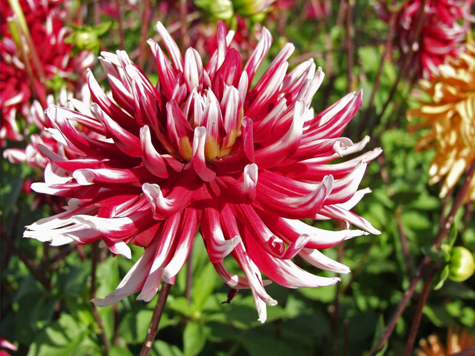Dahlia Cactus ‘Friquolet’ is a striking and unusual variety, showcasing curled, spiky petals in rich crimson-red with elegant white tips. The dramatic bi-colour blooms and classic cactus form give it bold texture and standout appeal, making it a superb choice for borders, beds, and cutting gardens. Its eye-catching flowers add vibrant colour and architectural interest to any garden setting.