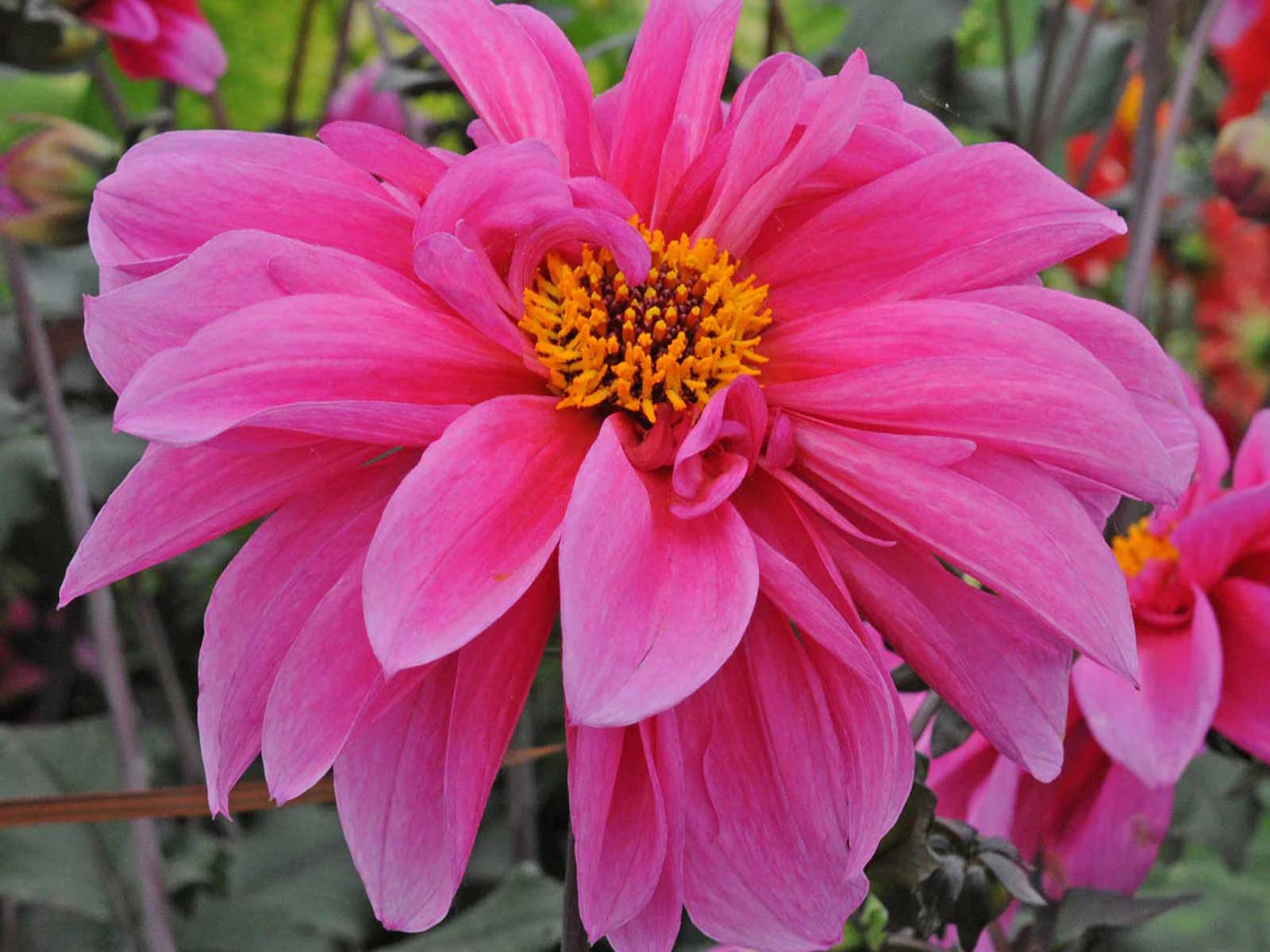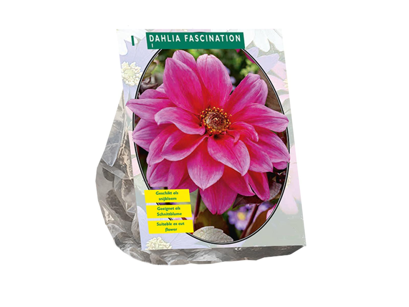 Dahlia ‘Fascination’ is a striking variety with luminous rosy-magenta single blooms that contrast beautifully with its rich bronze-purple foliage. The vivid flowers and dark leaves create a bold, contemporary effect, making it an excellent choice for borders, beds, and patio containers. This eye-catching cultivar adds vibrant colour and strong visual interest to any garden display.