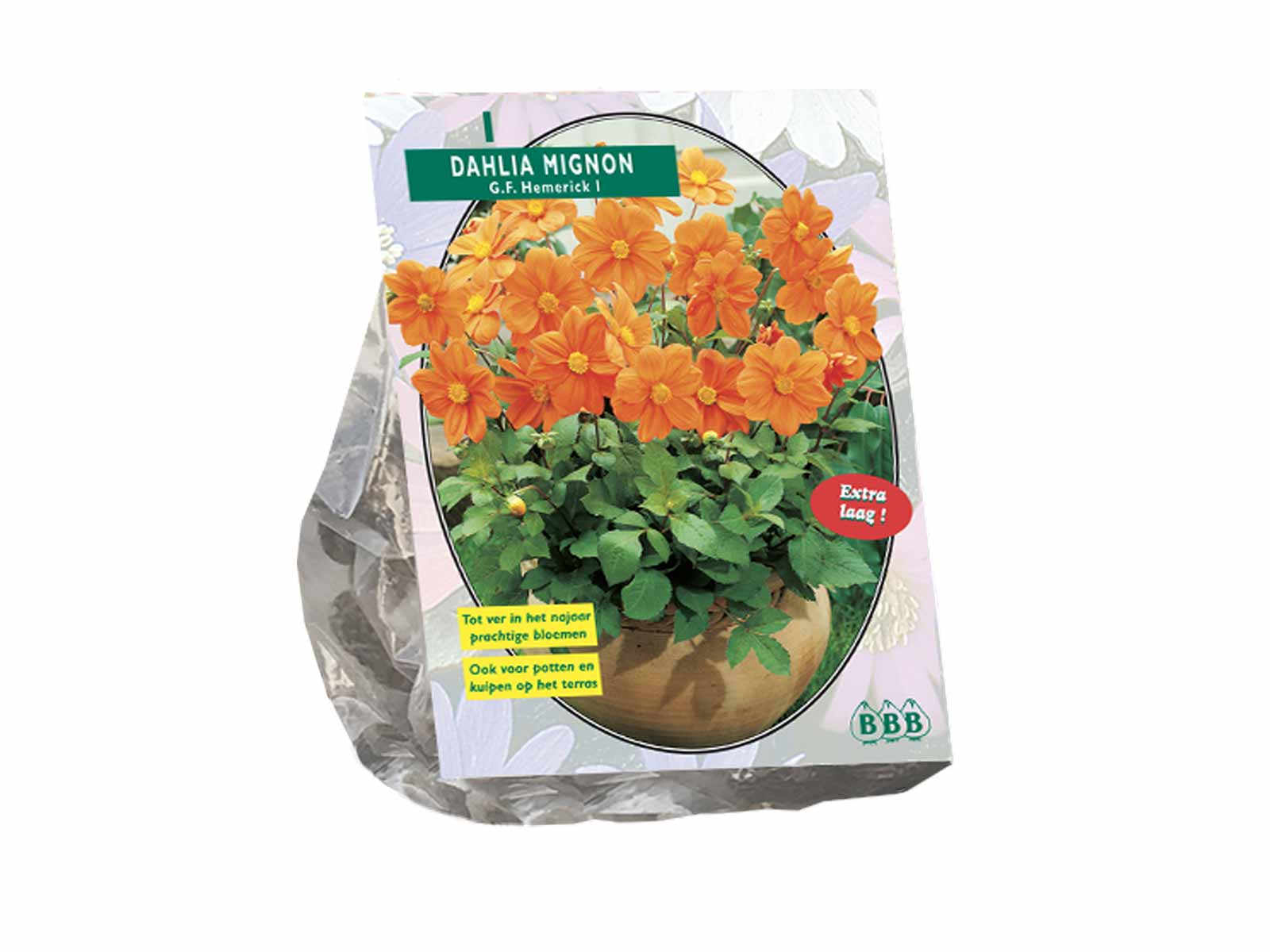 Dahlia Mignon ‘G.F. Hemerick’ is a charming dwarf variety showcasing bold, fiery orange blooms with a classic decorative form. Its compact size and abundant flowering make it ideal for borders, containers, and small garden beds. This eye-catching variety adds vibrant colour and architectural interest, bringing a warm, lively touch to any garden setting.