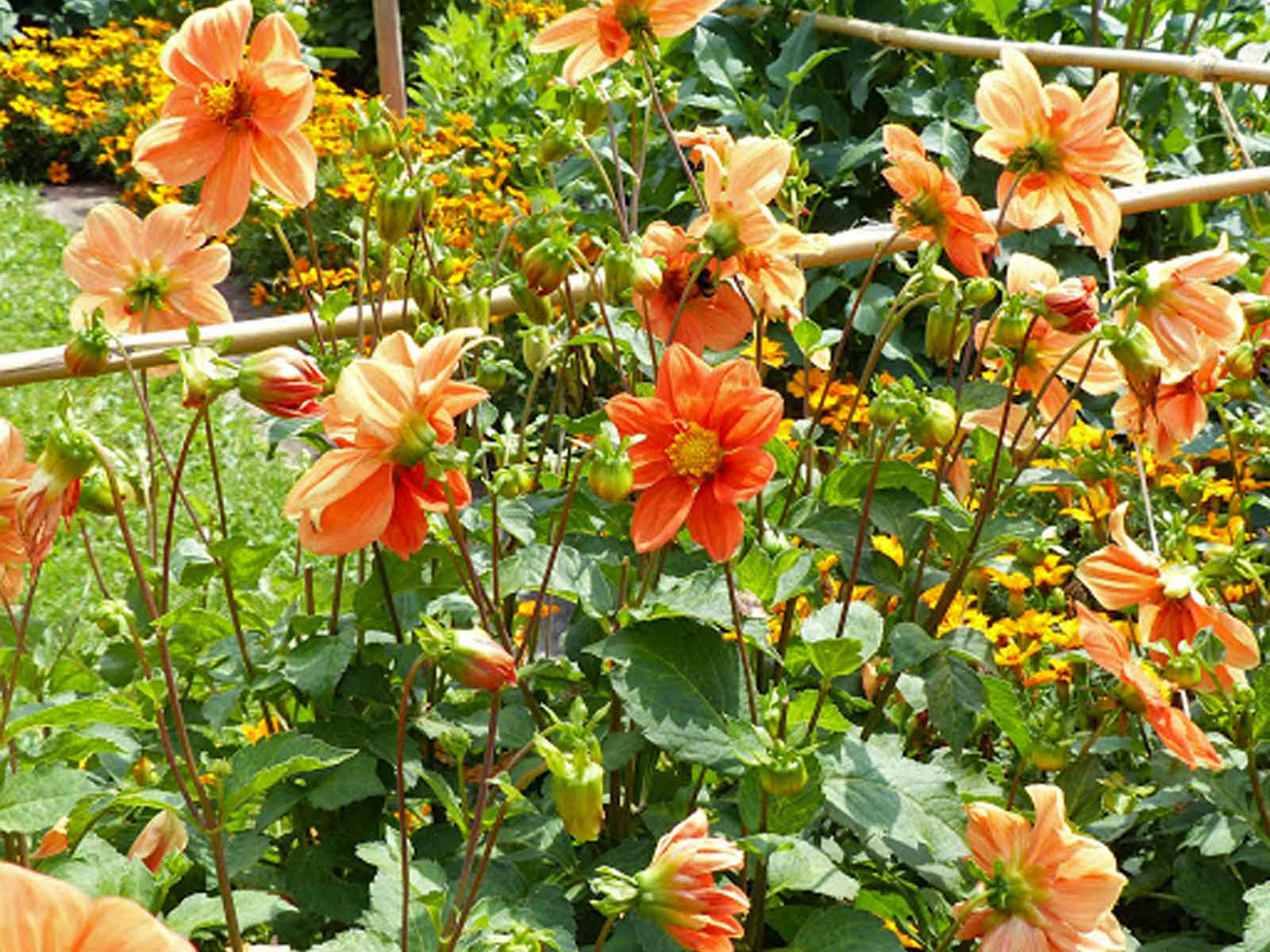 Reaching up to 30–40 cm (12–16″) in height, it thrives in moist, well-draining soil and prefers full sun for optimal growth. In colder climates, tubers should be lifted and stored over winter for protection. Expect a stunning display of bright orange blooms from mid-summer through early autumn!