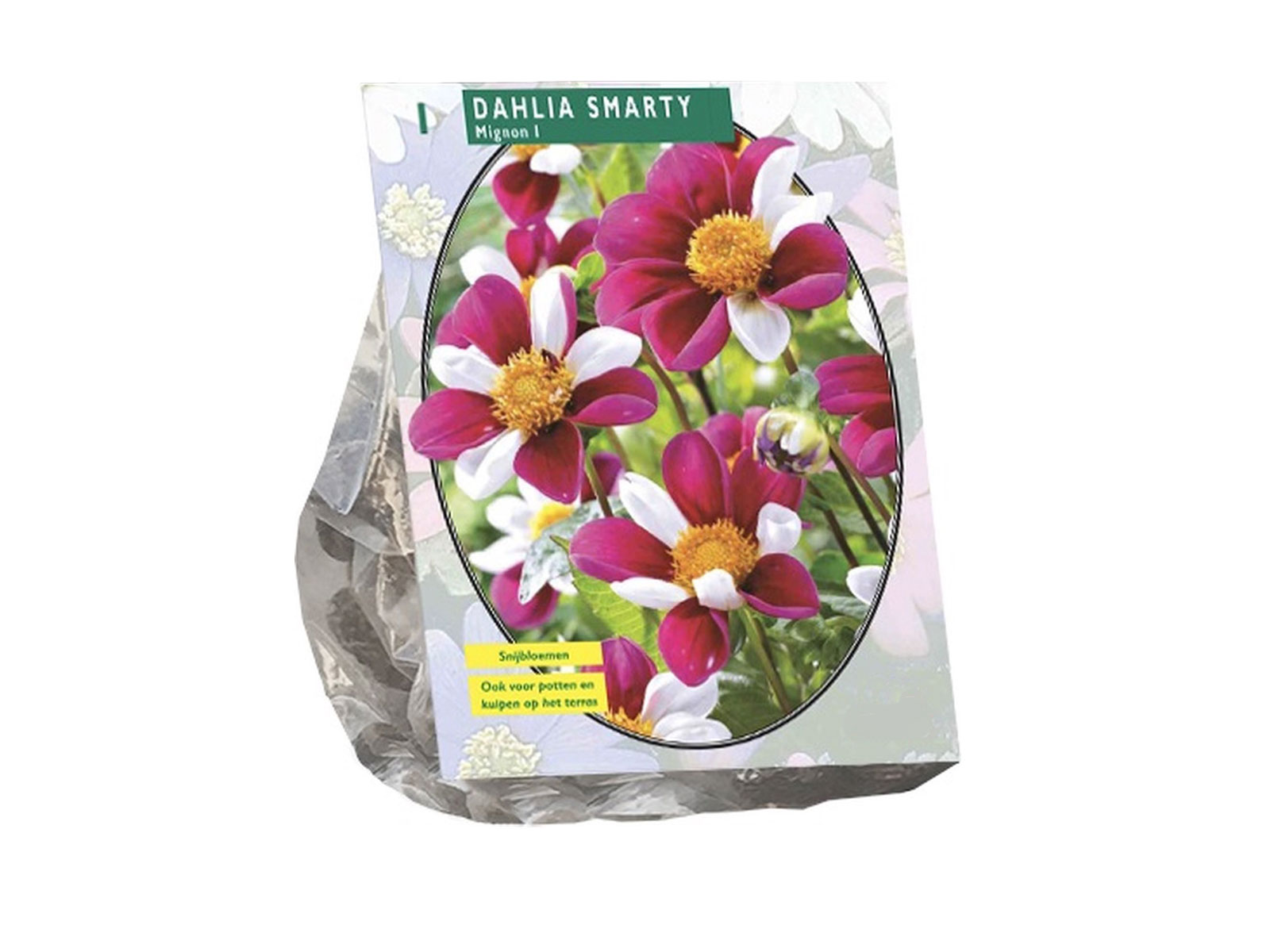 Dahlia Mignon ‘Smarty’ is a charming compact variety with soft, pastel pink blooms edged in delicate white, creating a subtle and elegant contrast. Its small, cactus-shaped flowers and neat, bushy habit make it perfect for borders, containers, and mixed beds. This lovely variety adds gentle colour and texture to any garden space.