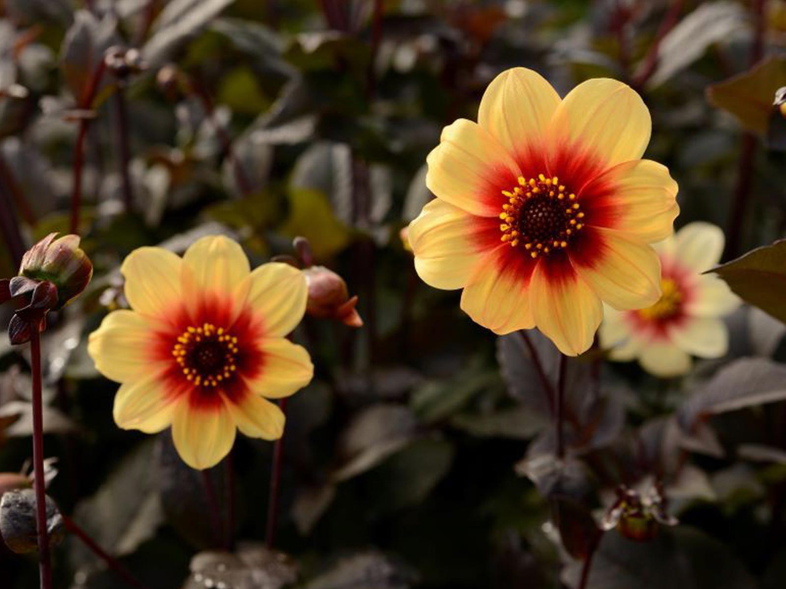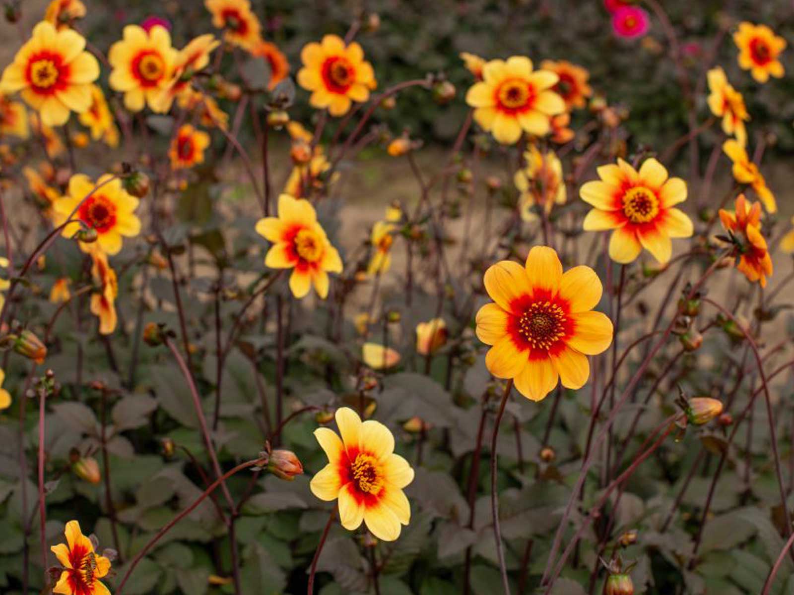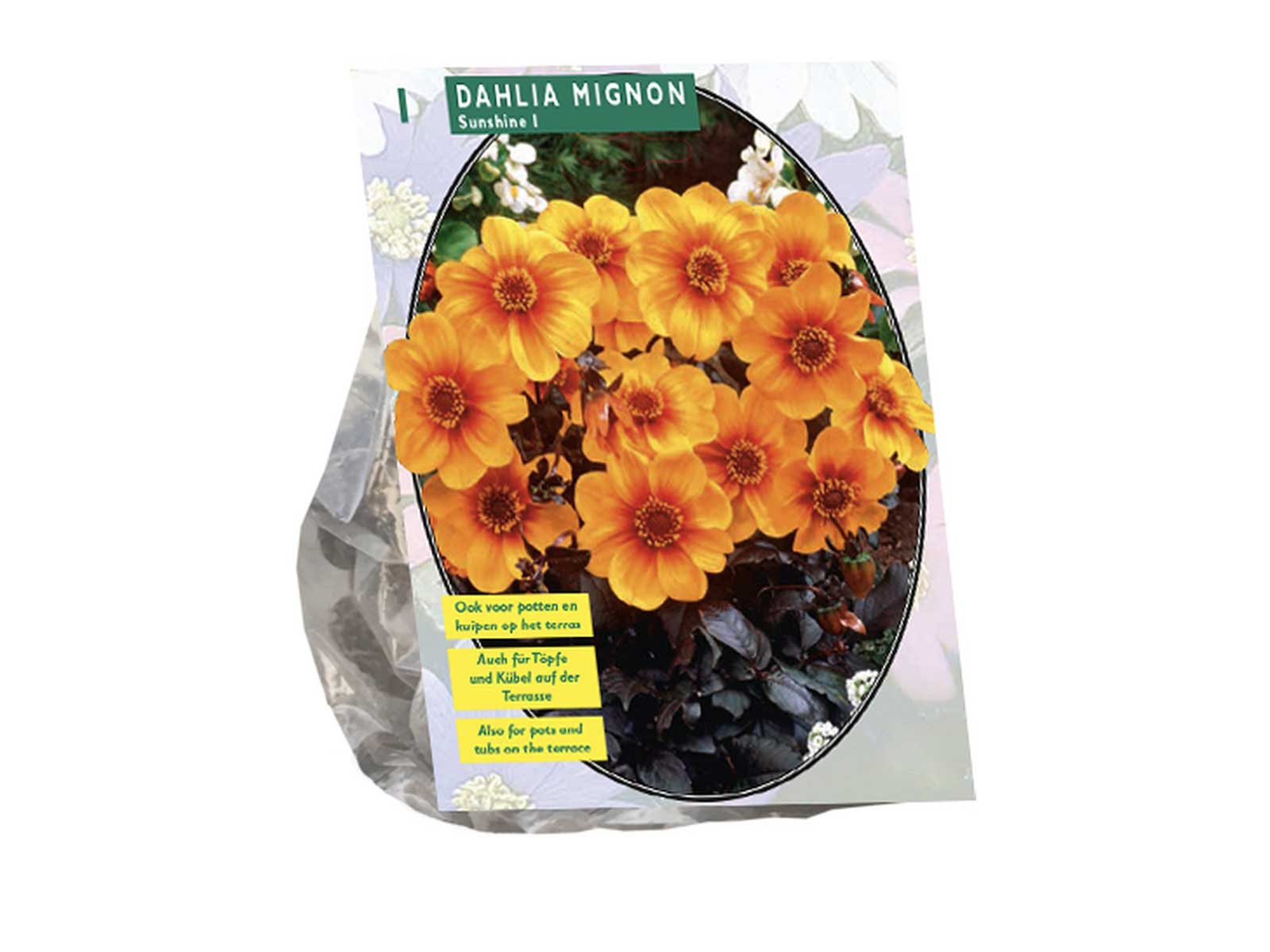 Dahlia Mignon ‘Sunshine’ is a charming compact variety showcasing bright orange blooms with a striking reddish centre, creating a beautiful warm contrast that enlivens any garden space. Its small, cactus-shaped flowers and neat, bushy form make it ideal for borders, containers, and mixed beds. This vibrant variety adds bold colour and delicate architectural interest to your garden.