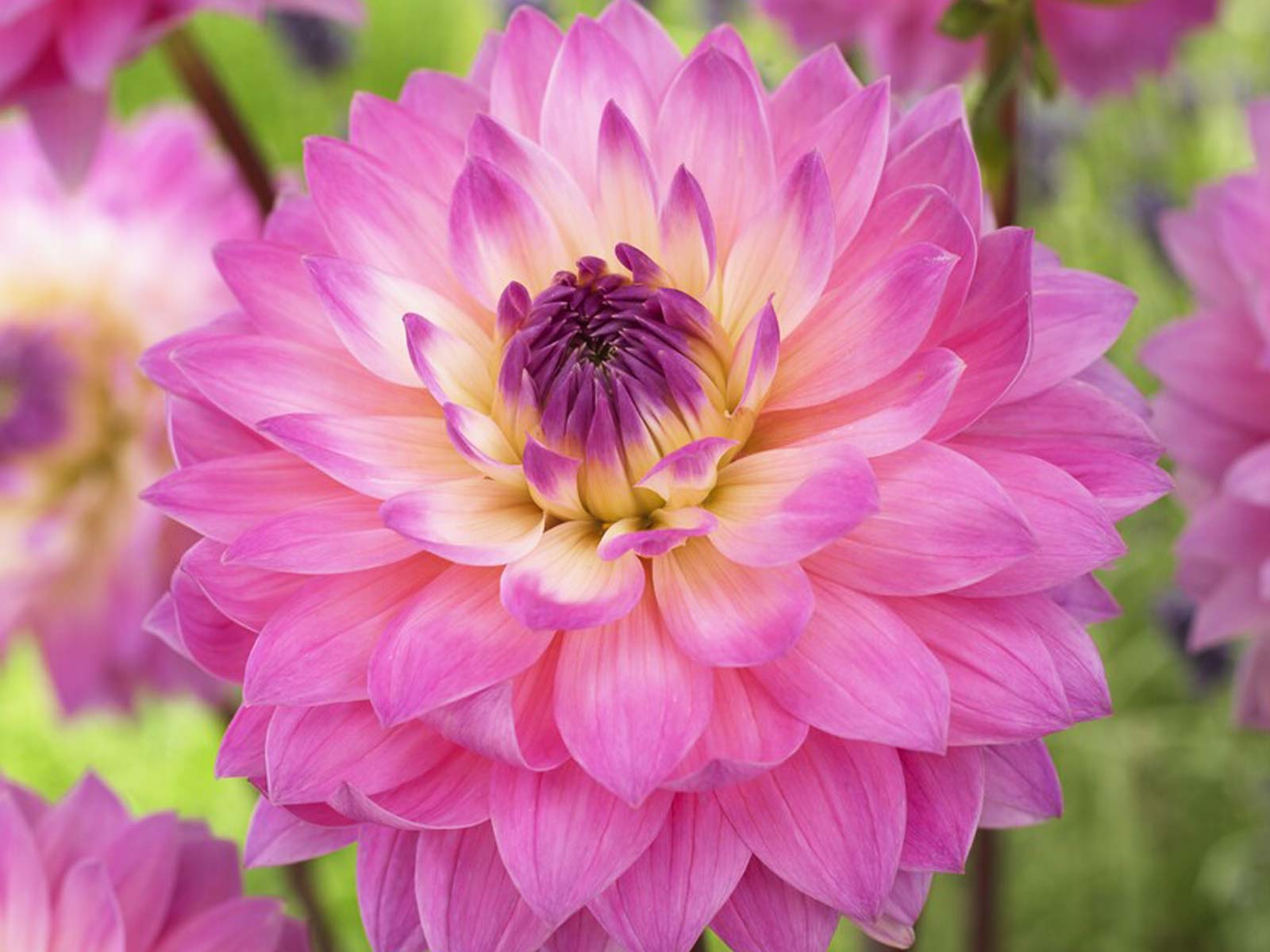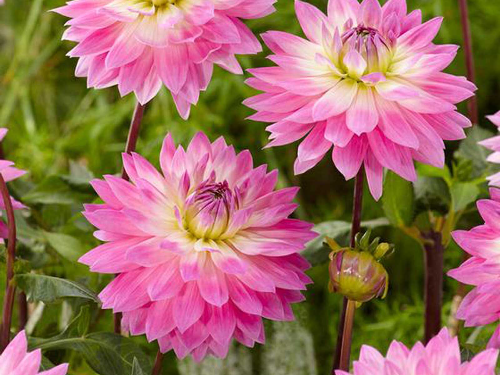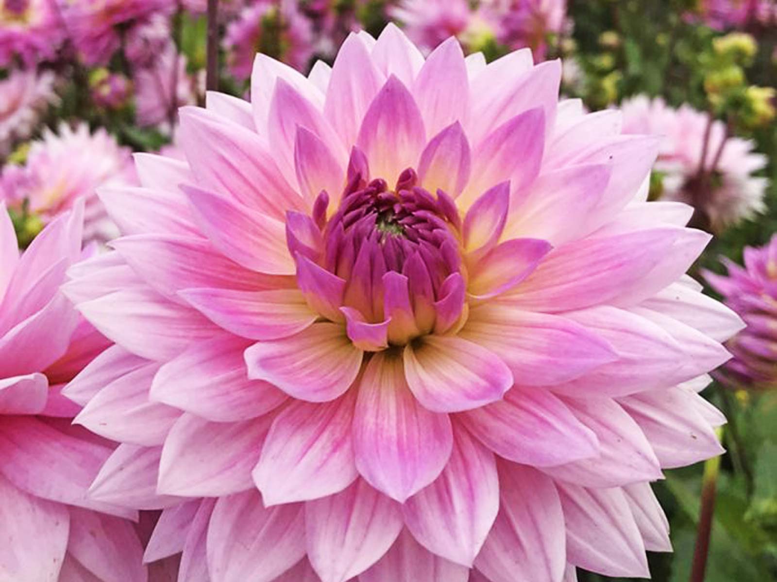 Dahlia ‘Miss Delilah’ is a graceful, free-flowering variety with large, soft pink blooms that deepen to a rich coral at the center. Its elegant, decorative form makes it perfect for borders, containers, and cut flower arrangements. Pair it with Dahlia ‘Cafe au Lait’ or Pennisetum ‘Karley Rose’ for a romantic, sun-kissed display.
