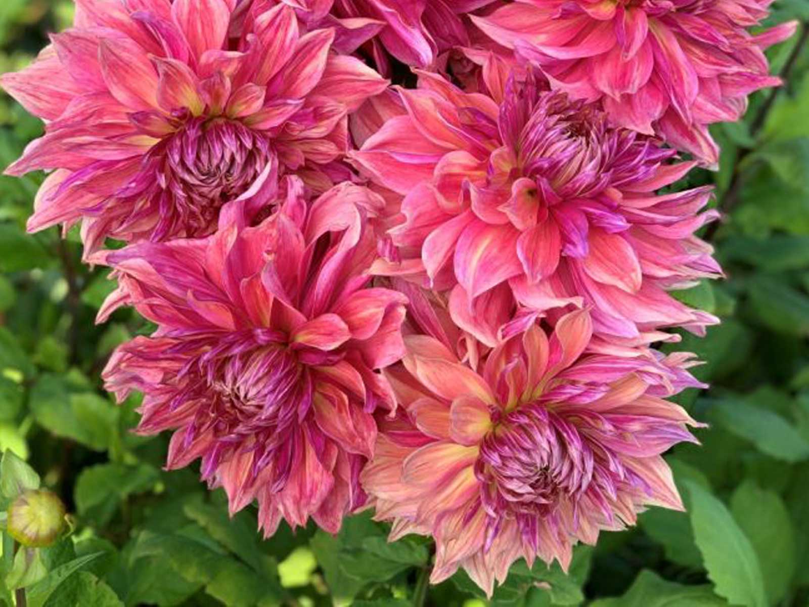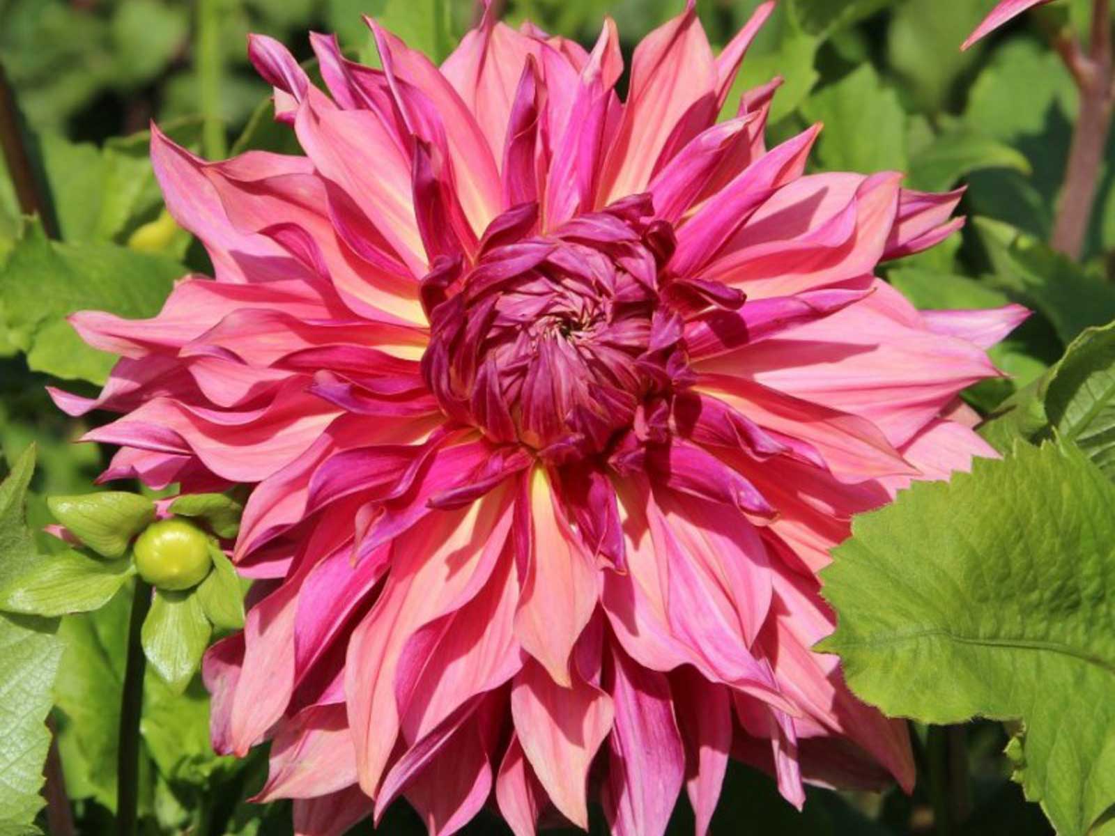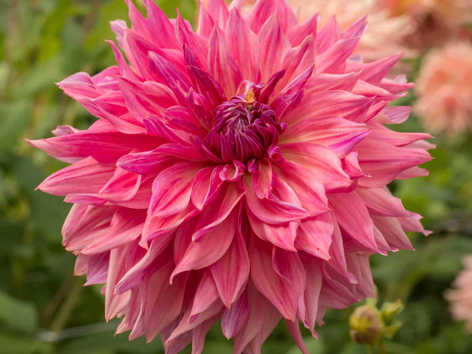 Dahlia ‘Penhill Dark Monarch’ is a magnificent dinnerplate dahlia renowned for its expansive, ruffled blooms that can reach up to 25 cm (10 inches) in diameter. The flowers exhibit a mesmerizing mix of deep pink, raspberry, and purple shades, occasionally accented with soft salmon or buttermilk undertones, creating a dynamic and eye-catching display. Its slightly twisted petals add to the bloom’s informal elegance, making it a standout addition to borders, beds, and large containers.