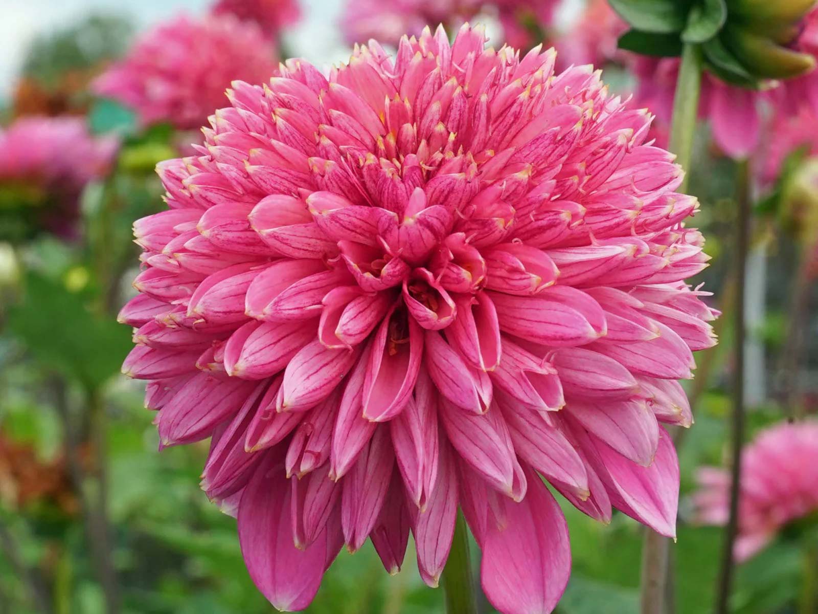 Dahlia ‘Powder Puff Alyshia’ is a charming, compact dahlia with soft pink, pompom-style blooms that bring a playful, romantic touch to summer displays. Its tightly packed petals and rounded form create texture and interest, making it a standout in borders, containers, or cottage-style gardens.