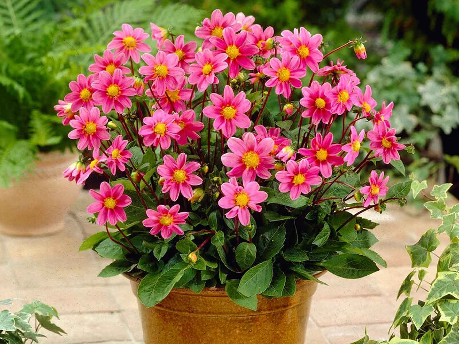 Dahlia Topmix ‘Pink’ is a delightful compact variety featuring soft pink single blooms that create a gentle and romantic effect in the garden. Its elegant flowers, combined with tidy green foliage, make it a lovely addition to borders, edges, containers, and small garden spaces. This variety brings a graceful charm and a pop of pastel color to any outdoor setting.