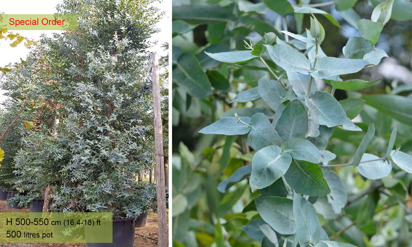 60-80 litre pot: approximate height 300-350 cm / 9.8-11.5 ft