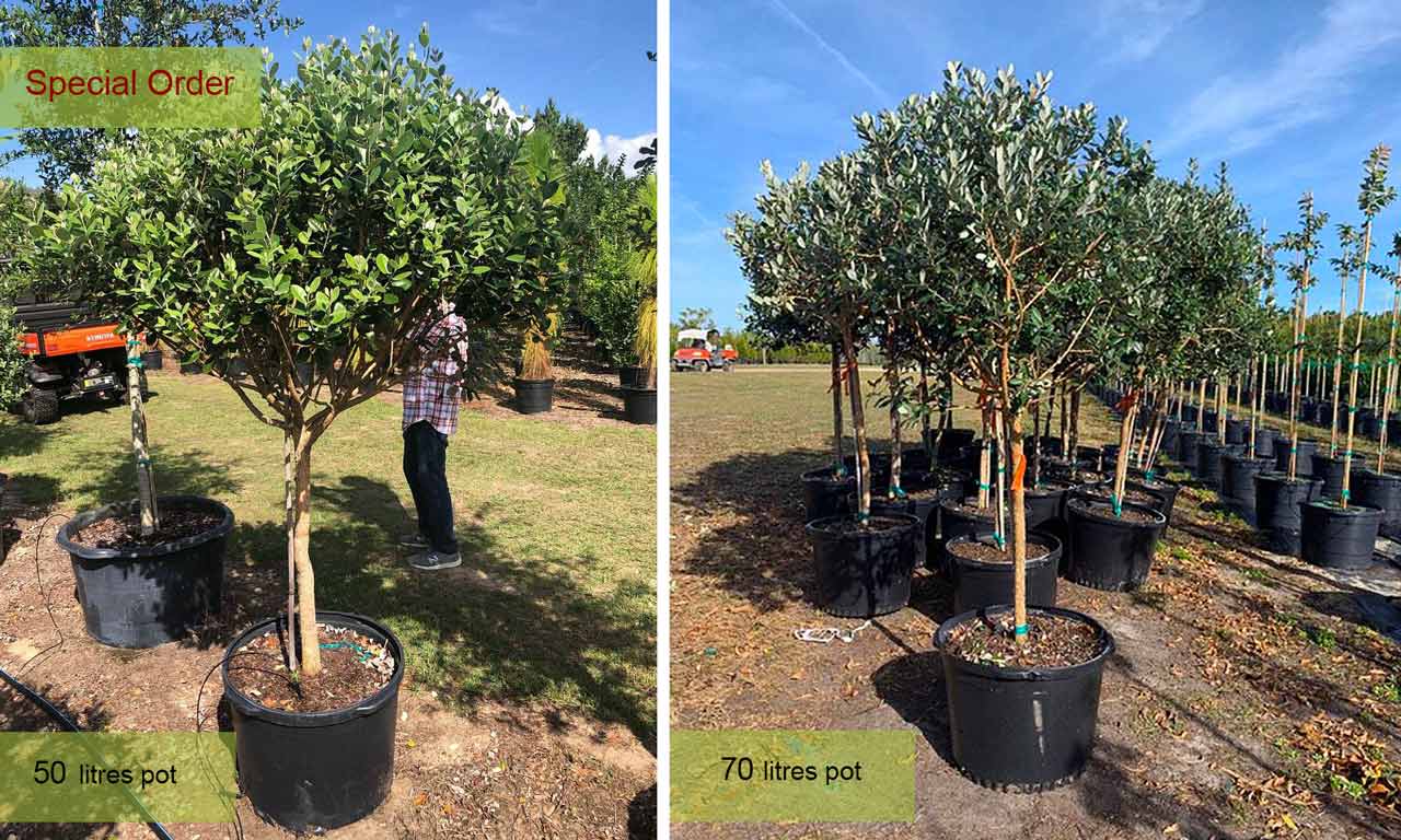 90 litre pot: trunk 80 – 120 cm (2.6-3.9 ft), canopy app. 60 – 100 cm (1.9-3.2 ft)