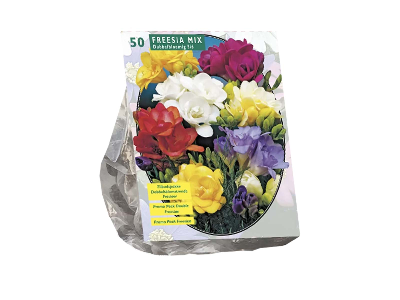 Freesia Double Mixed is a vibrant selection of highly fragrant, free-flowering blooms in a variety of rich and pastel shades, including red, yellow, pink, purple, and white. With their elegant, ruffled petals and strong, sweet fragrance, these freesia flowers are perfect for borders, containers, and cut flower arrangements. Their long-lasting blooms make them a favorite for floral displays both in the garden and indoors.